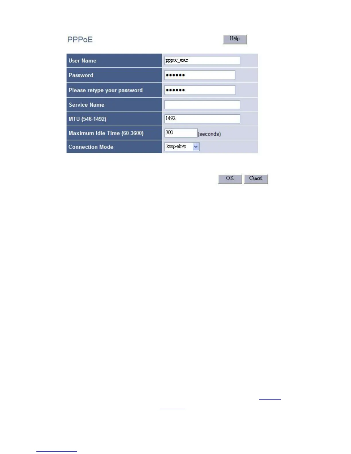 This page is the PPPoE configuration page. Most of the ISPs request the