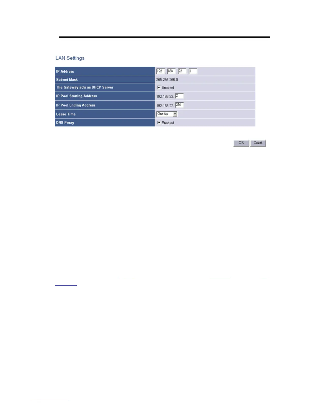 This page is to set the configuration of the LAN interface of the gateway.