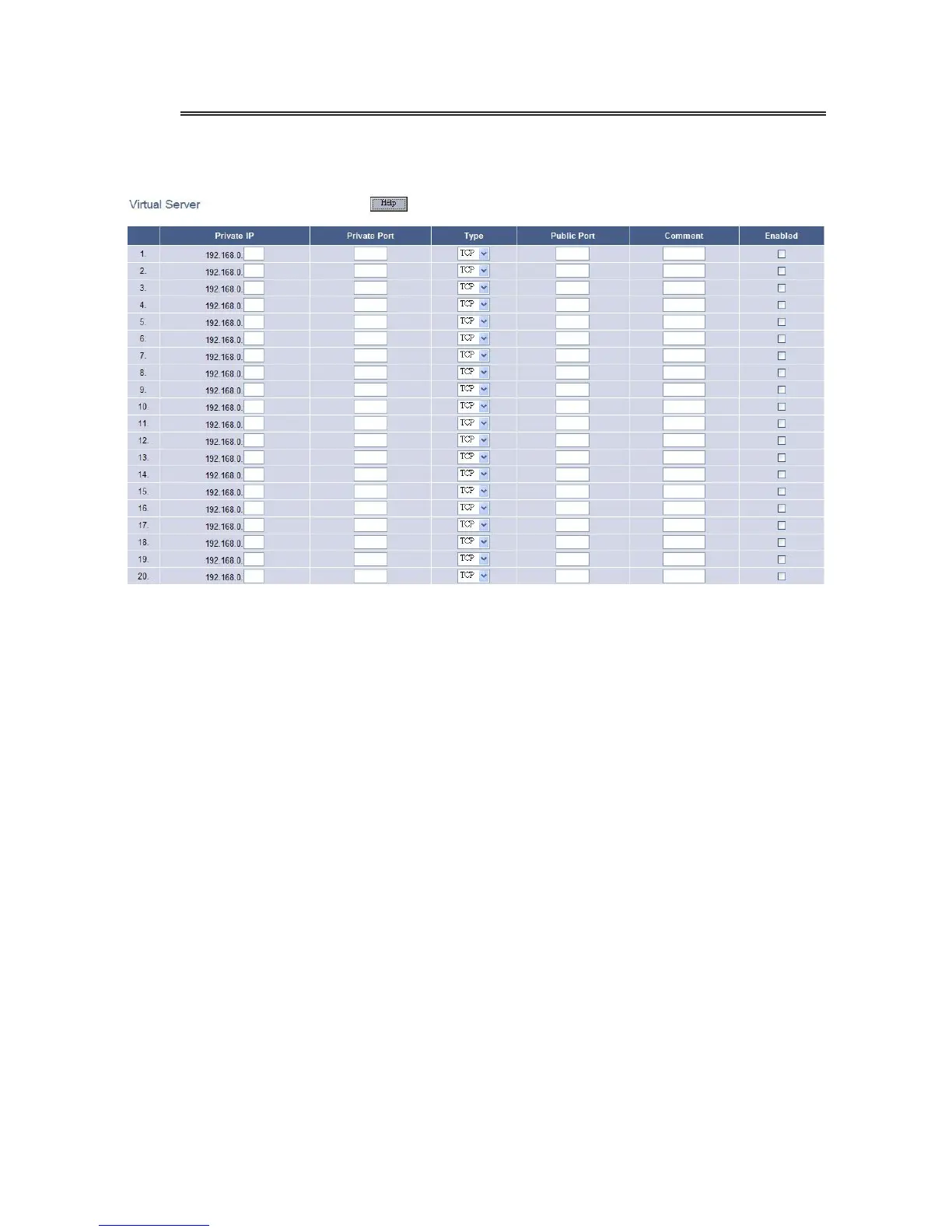 This is the virtual server page, which set the rules translate the private IP/private port pairs to the