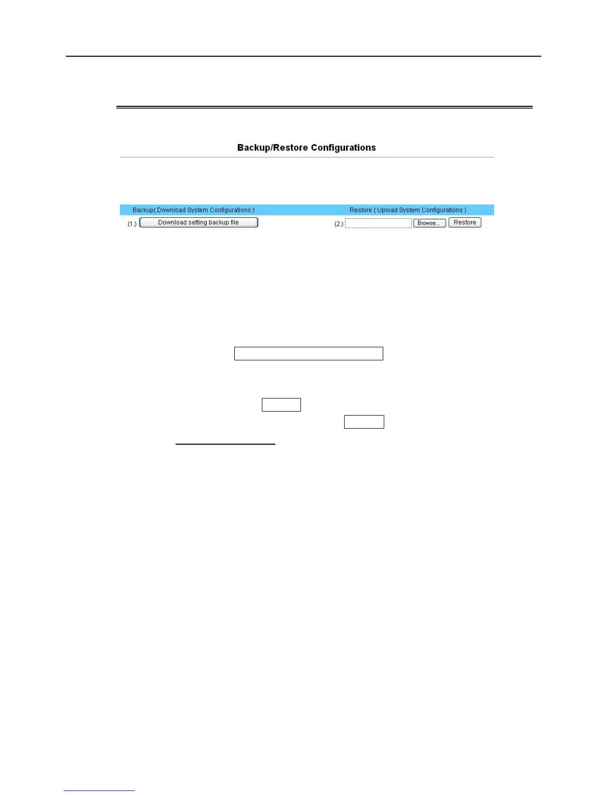 *** Caution: Never power off the VoIP Gateway when during Restore configure or