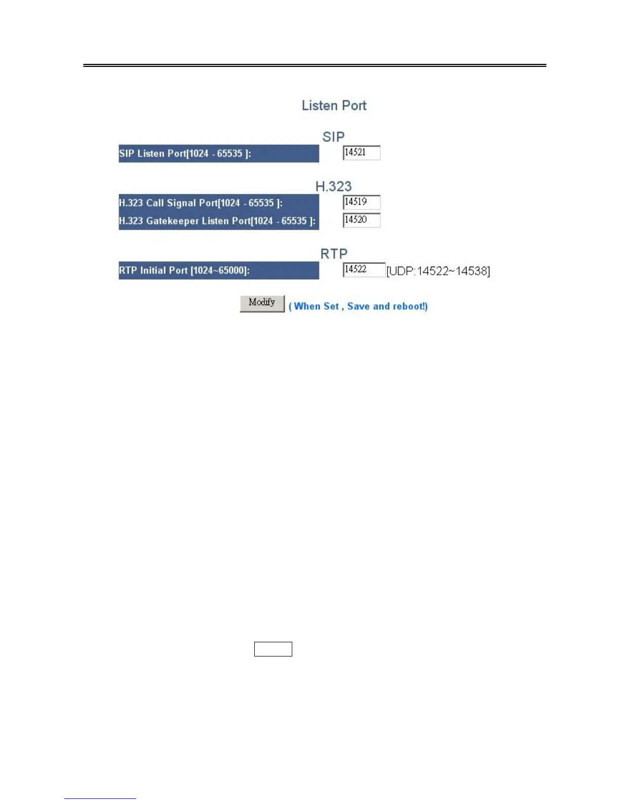 a. SIP Listen Port : Define the listen port for SIP protocol, the default