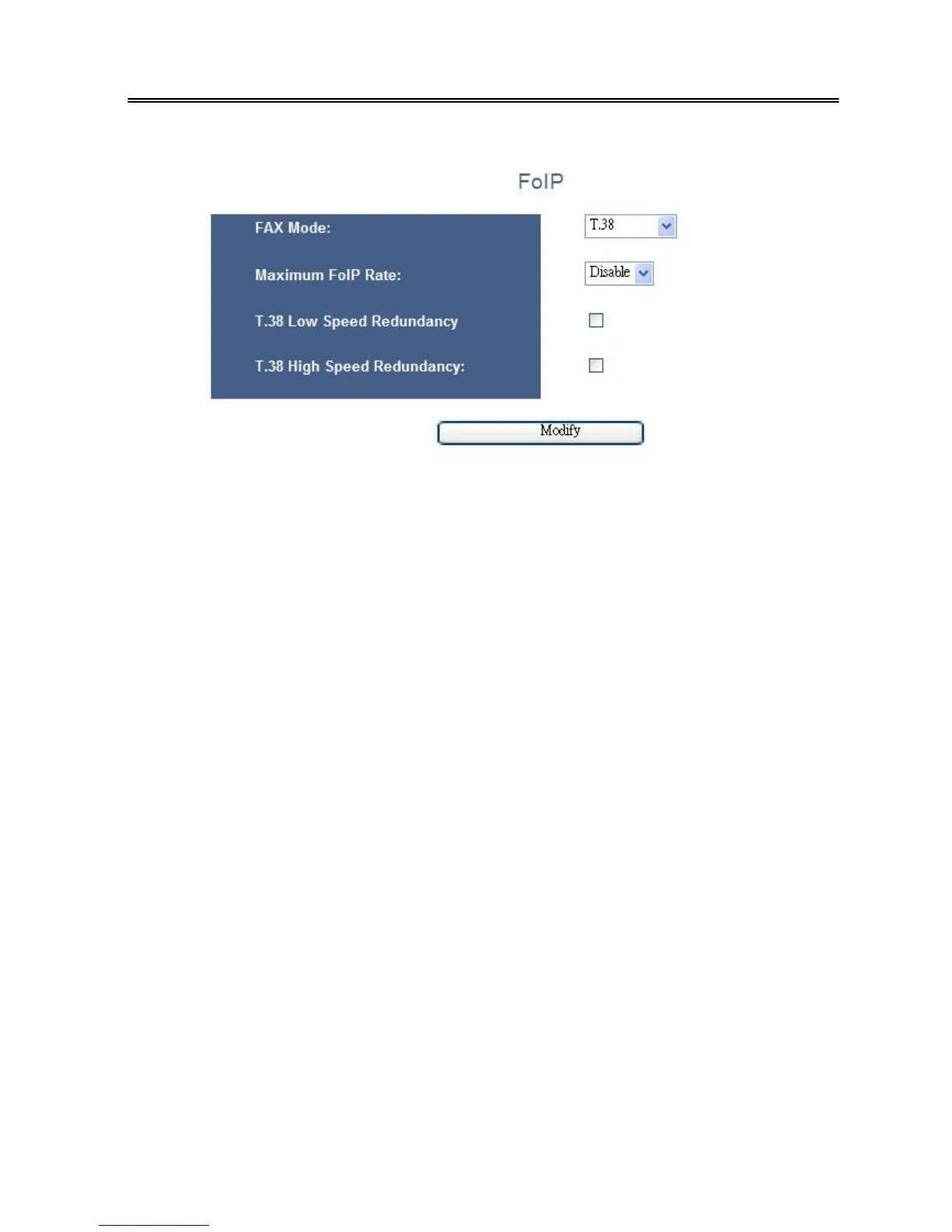 T.38: Enable and supported to T.38 protocol for FoIP .