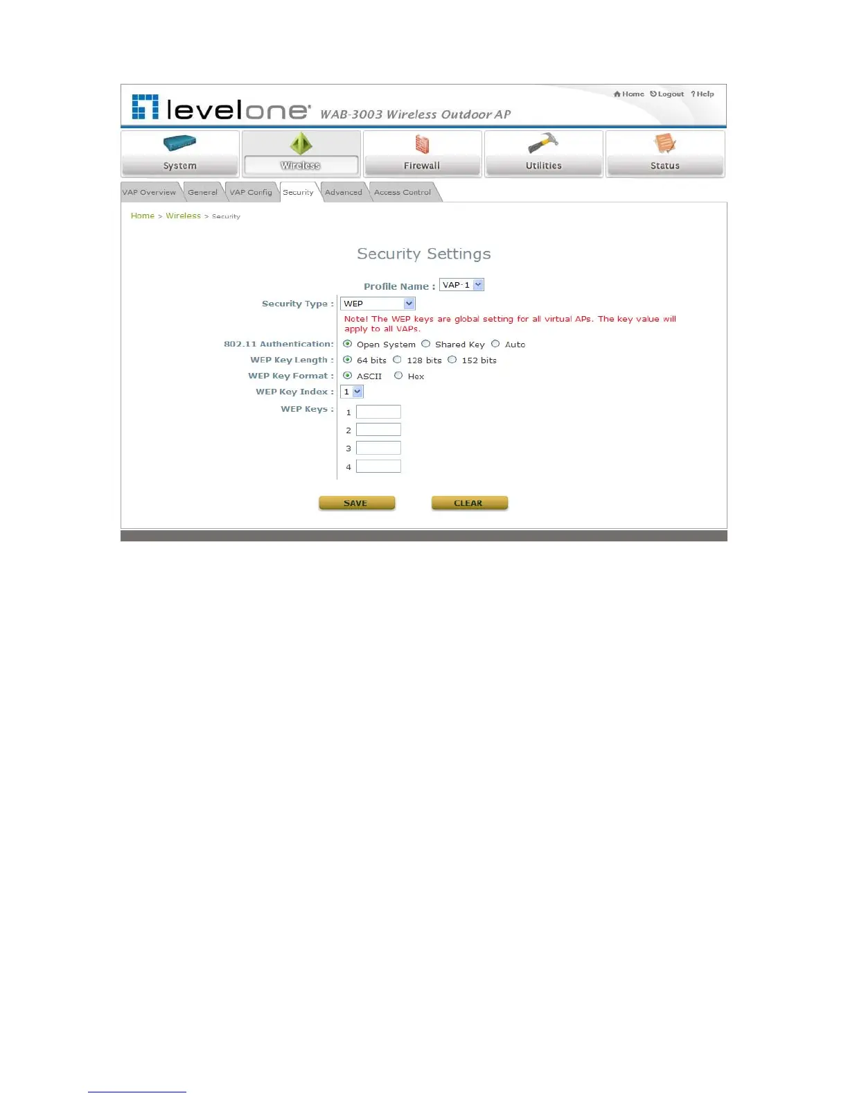 Select the desired VAP Profile and Security Type from the drop-down list boxes. The above