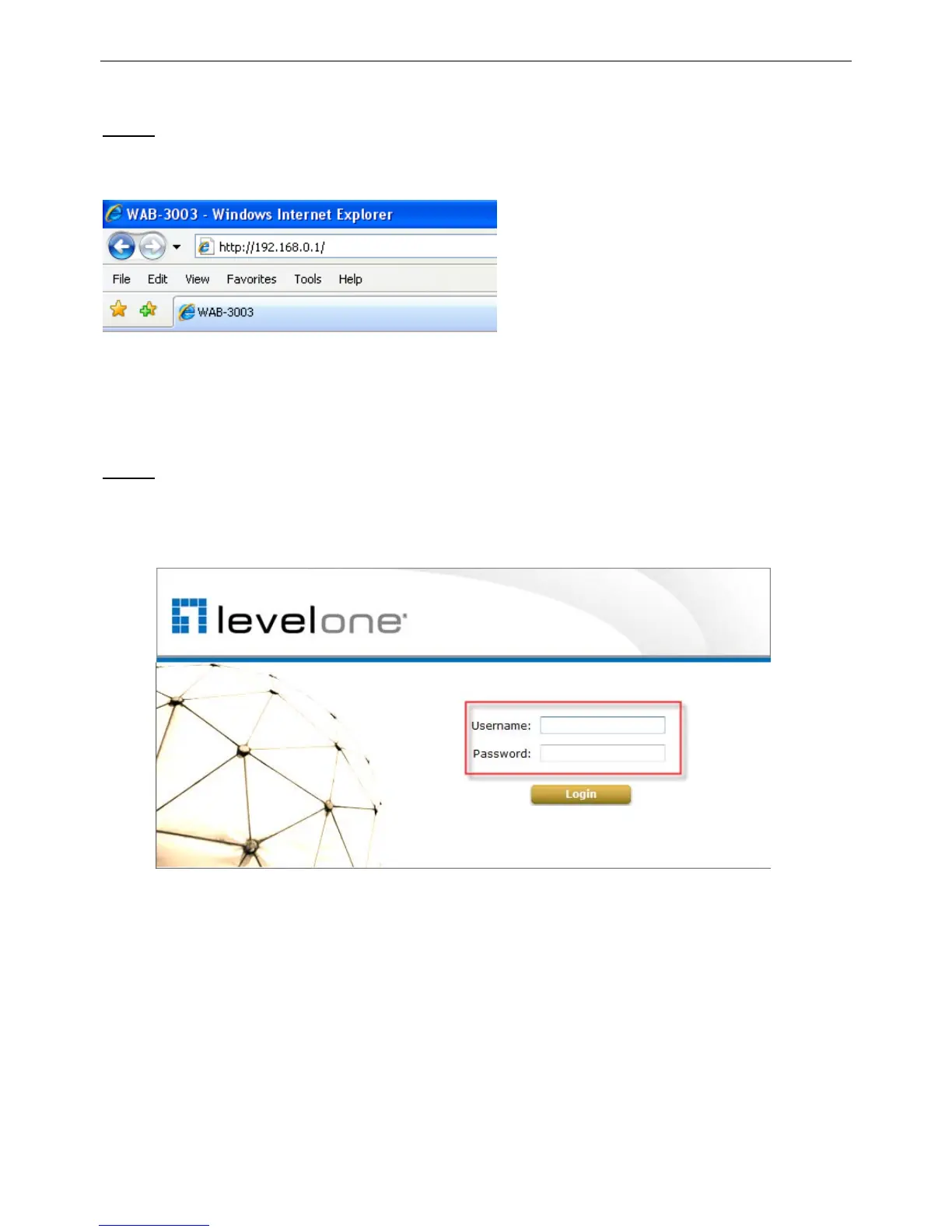 default IP address, http://192.168.0.1/, in the URL field, and then press Enter.