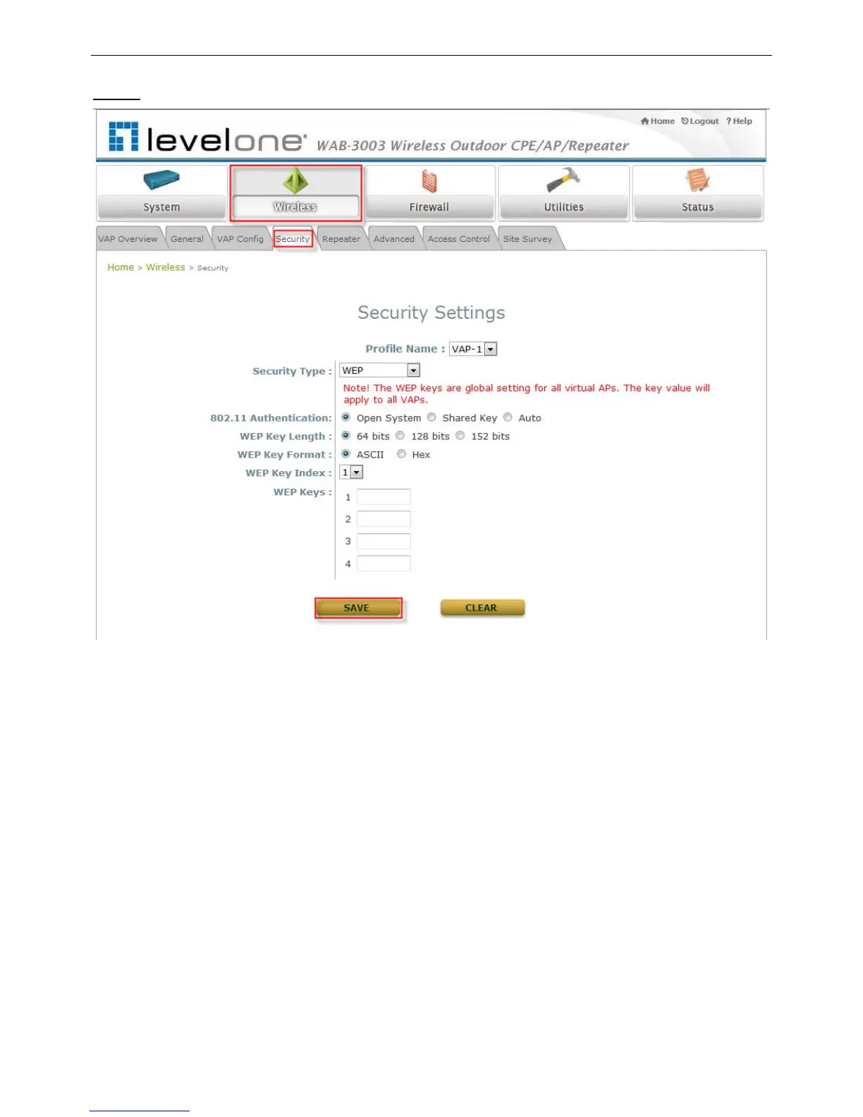 Select the desired VAP Profile and Security Type from the drop-down list boxes. The above