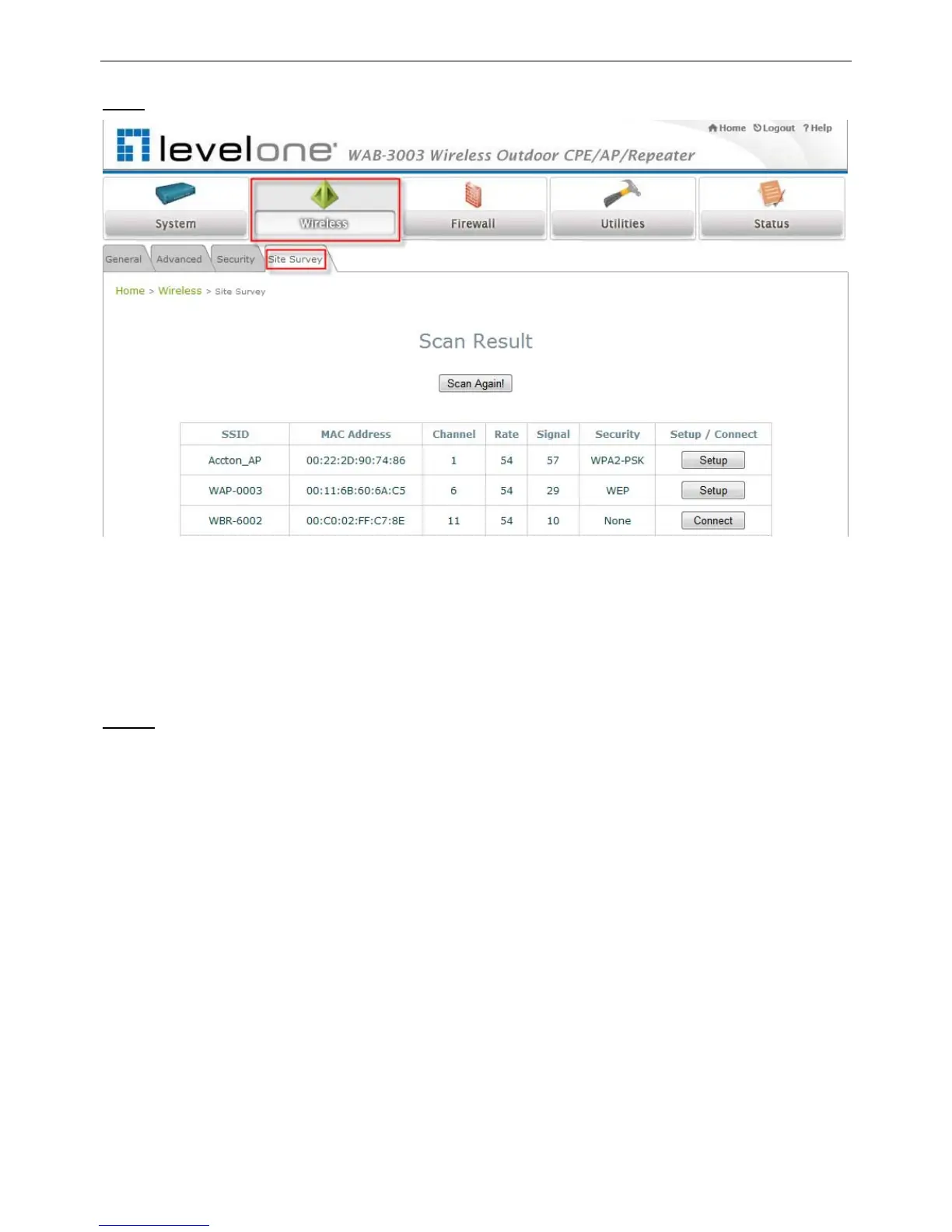 Select an AP to be associated with from the Scan Result list provided in Step 3.