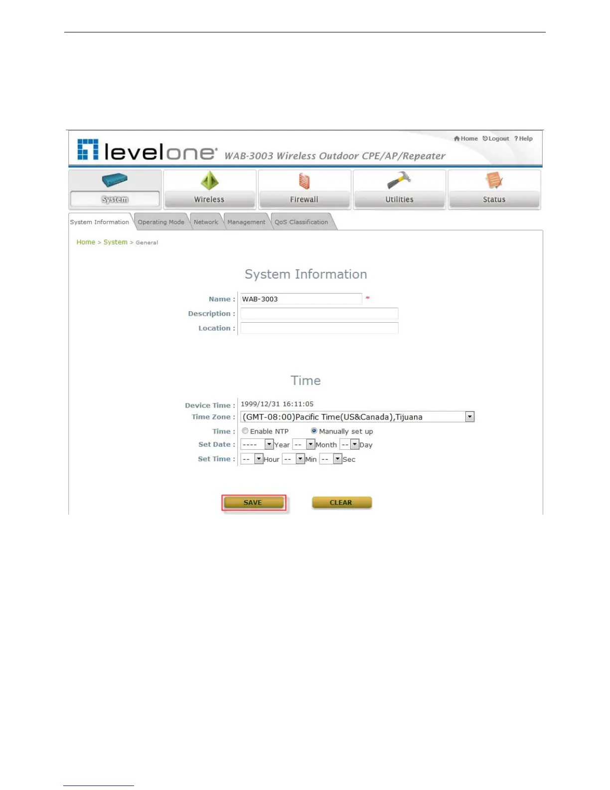 Operating Mode, Network Settings, Management Services, and QoS Classification.