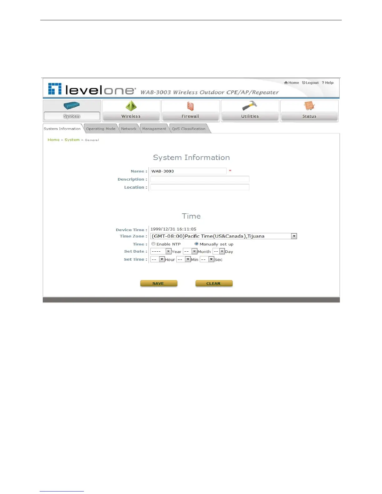 Synchronization: Synchronize the system time either by NTP server or manual setup.