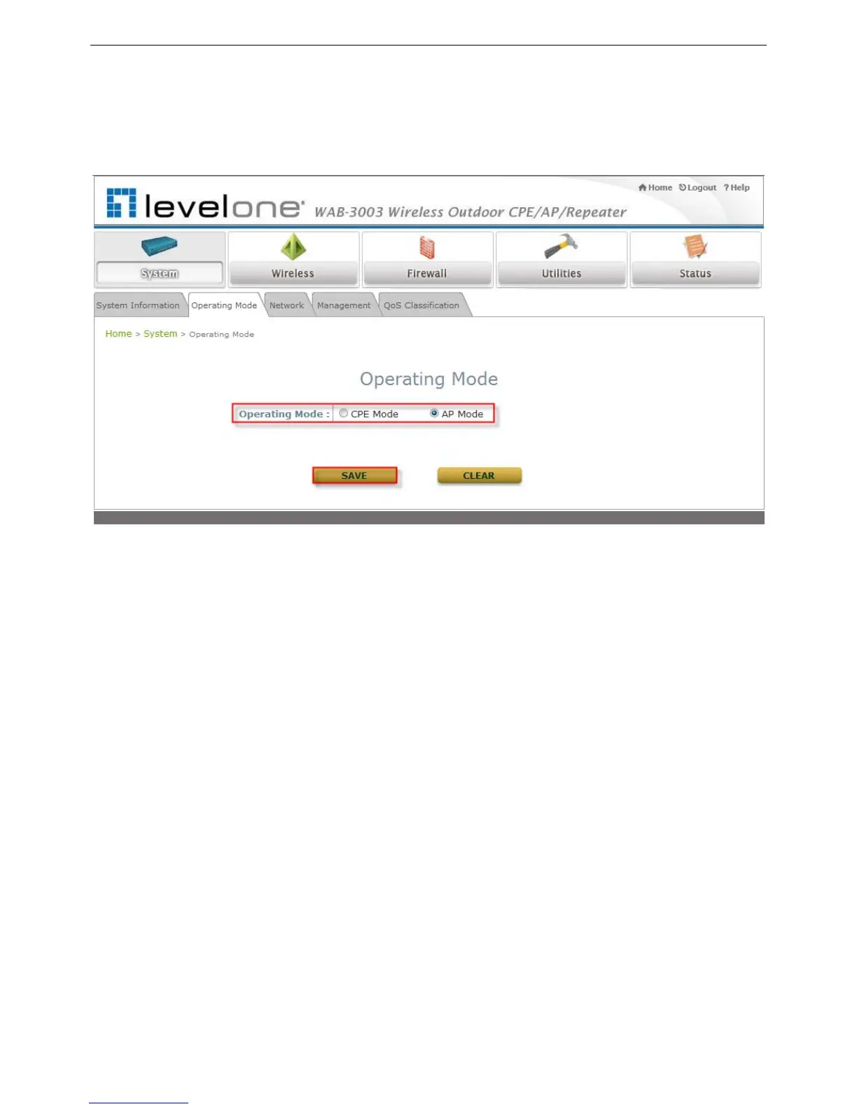 WAB-3003 supports two operation modes: CPE mode and AP mode. The administrator can set the