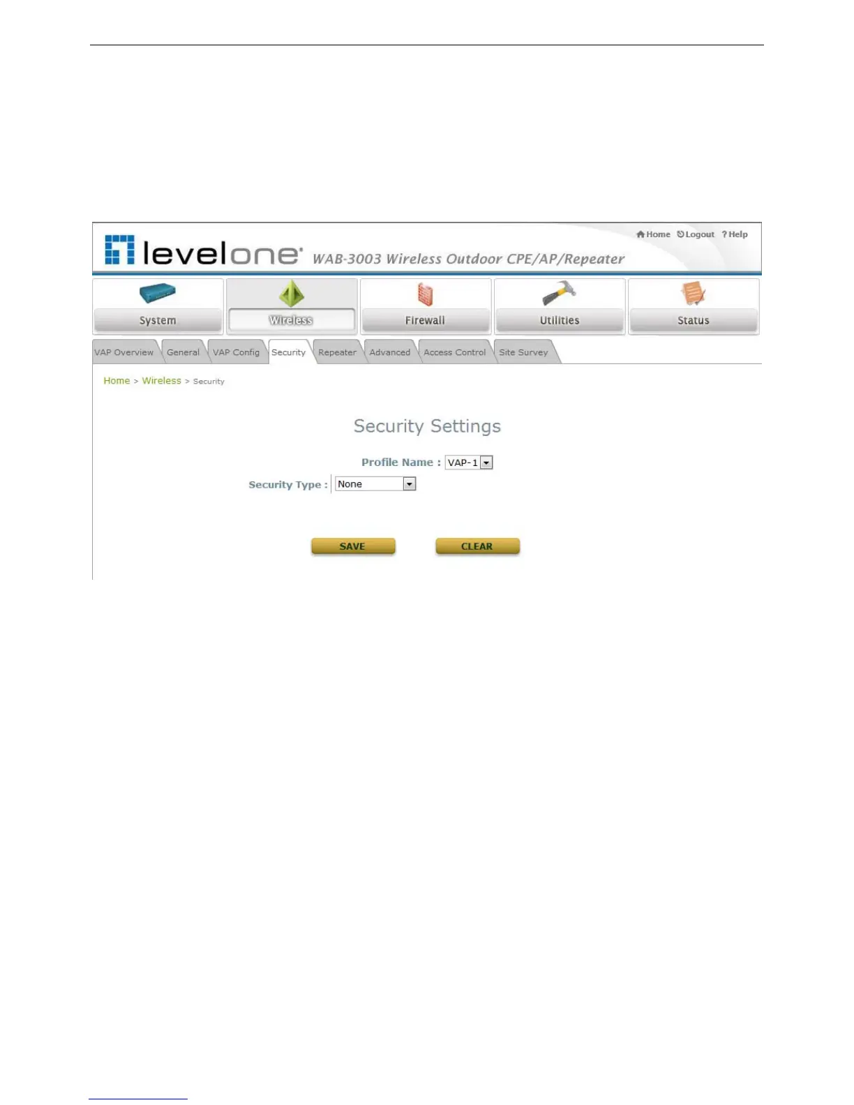security type includes None, WEP, 802.1X, WPA-PSK, and WPA-RADIUS.