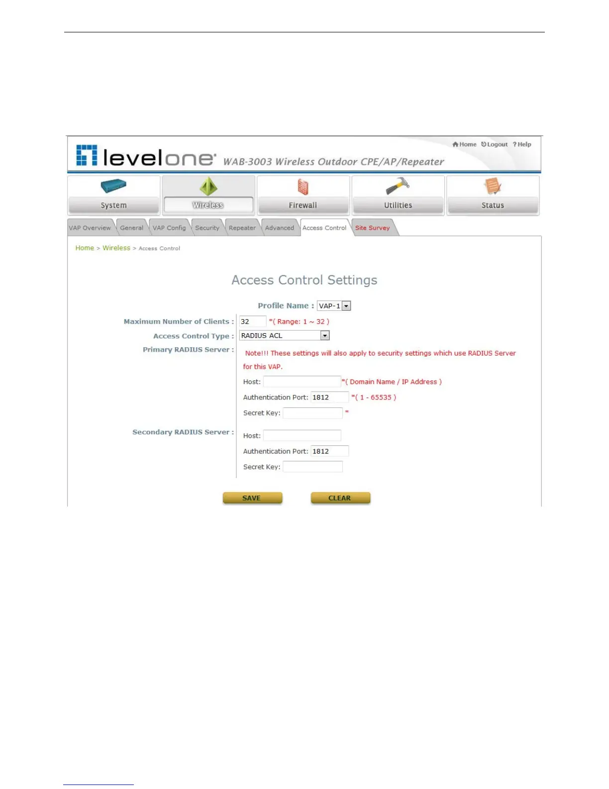 incoming MAC addresses will be authenticated by RADIUS. Please note that each VAP’s