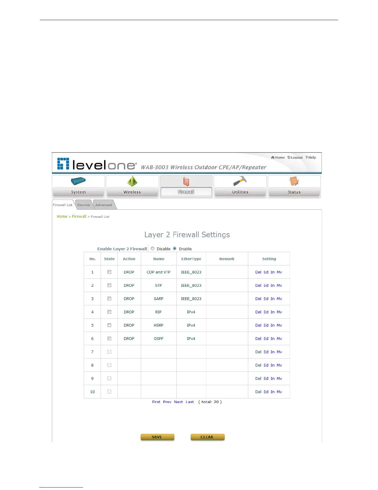 4.3.1 Layer 2 Firewall Settings