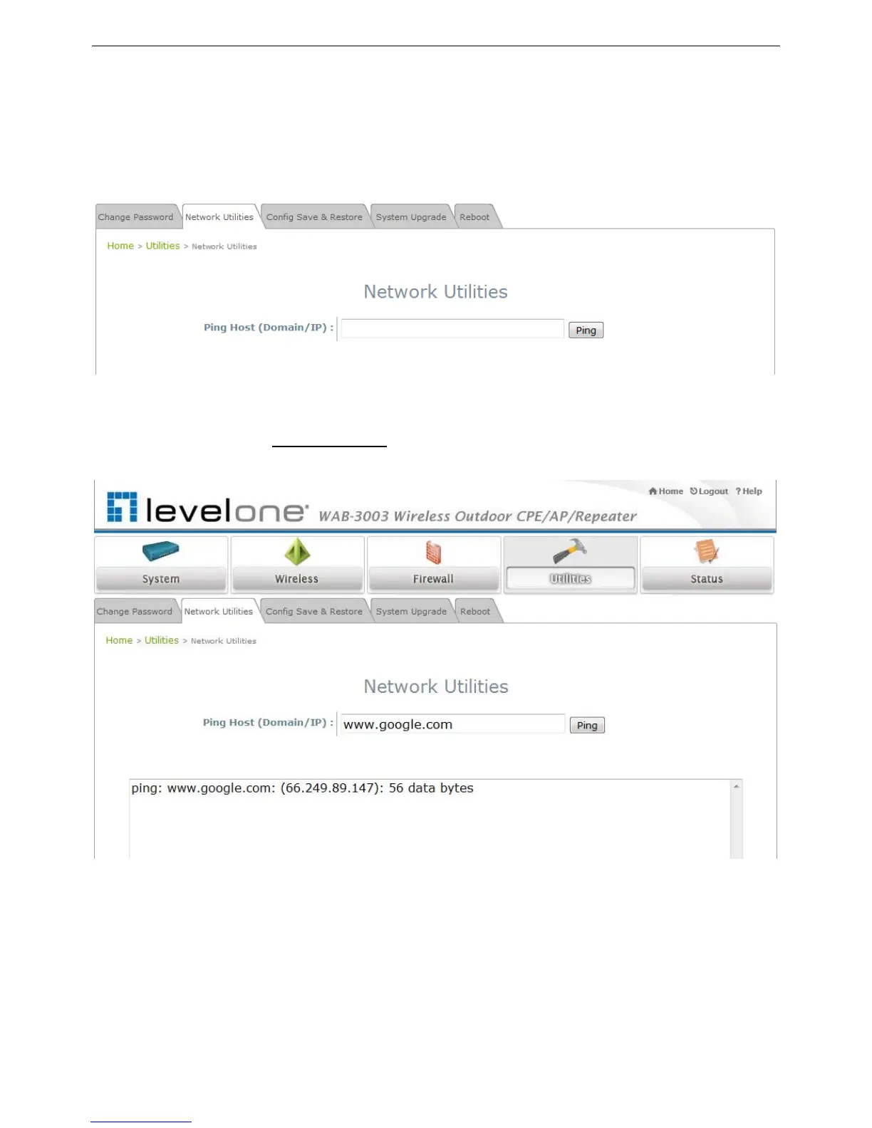 network utility is Ping and the target host FQDN-compliant name or IP address can be provided to