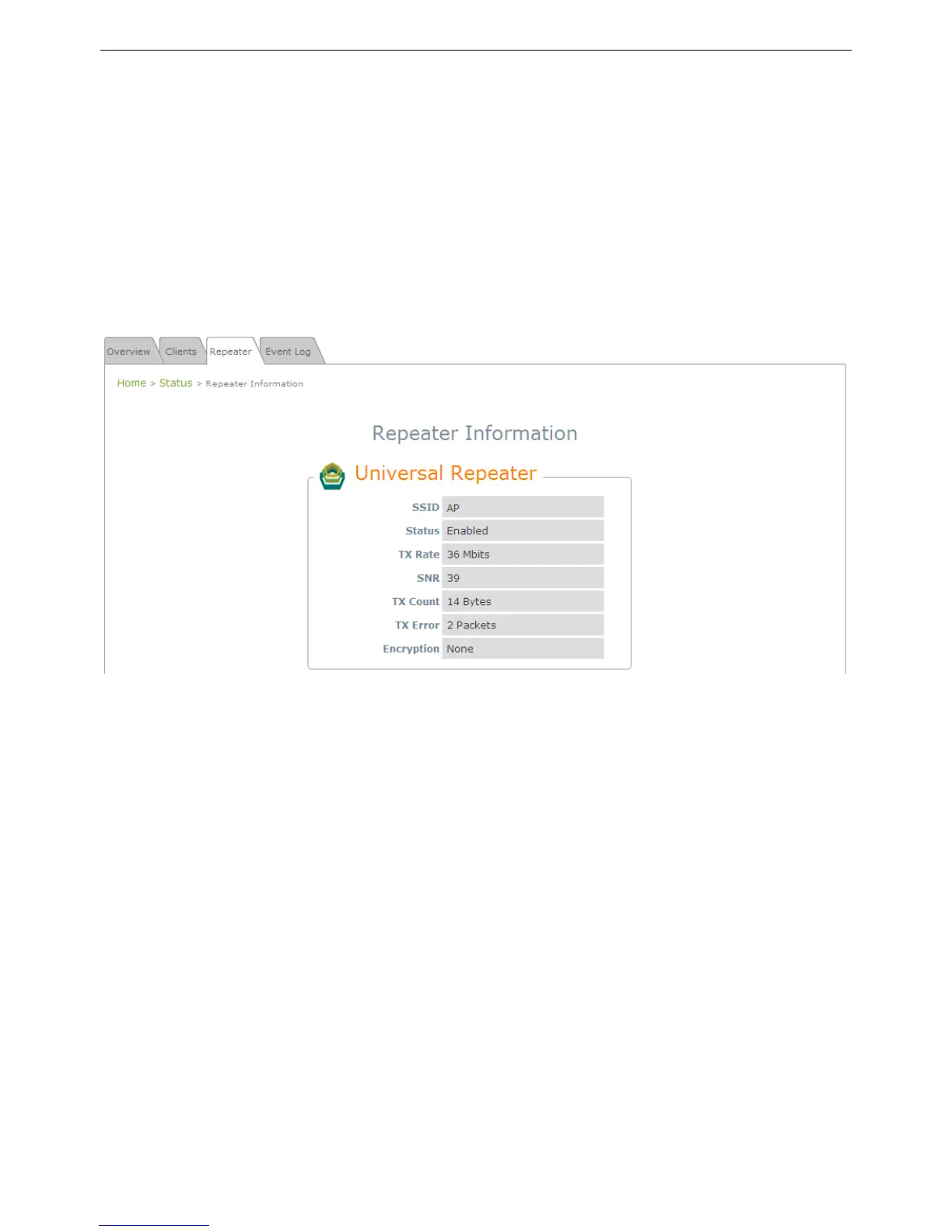 versal Repeater: The table will be displayed when Universal Repeater mode is selected. For
