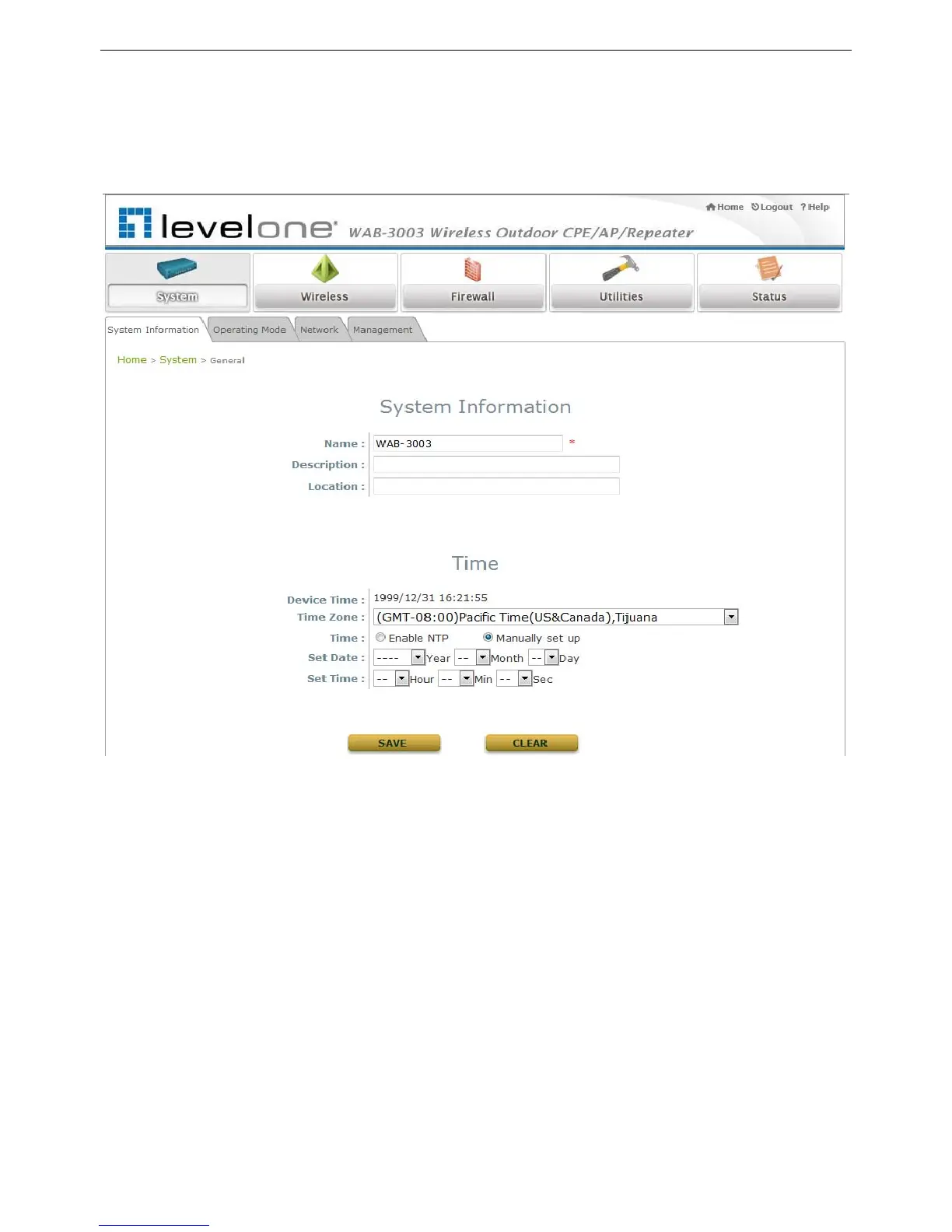 Time settings allow the system time synchronized with NTP server or manually set.