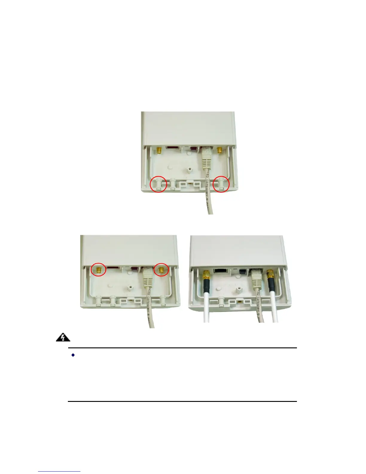Users MUST power off the CPE first before connecting the external antenna to it. Do
