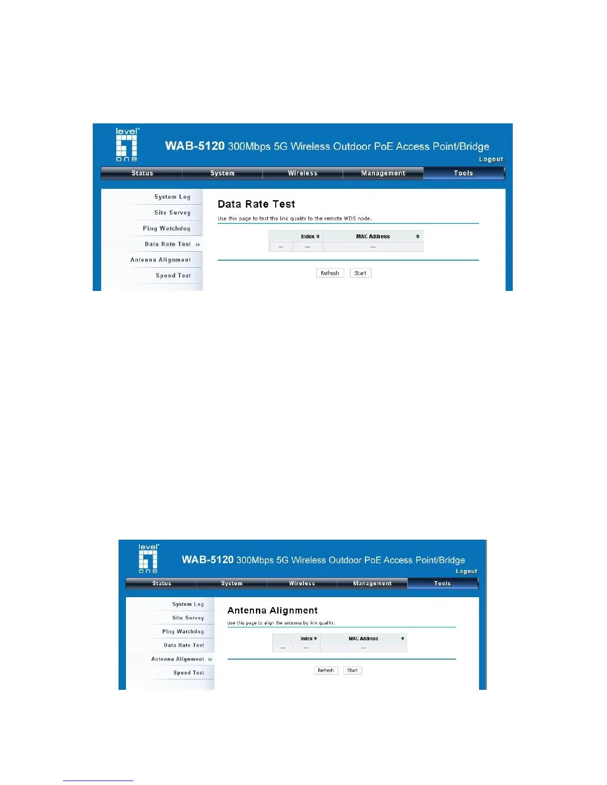 To use the tool, select the desired remote WDS bridge and click “Start”, the web page will display the