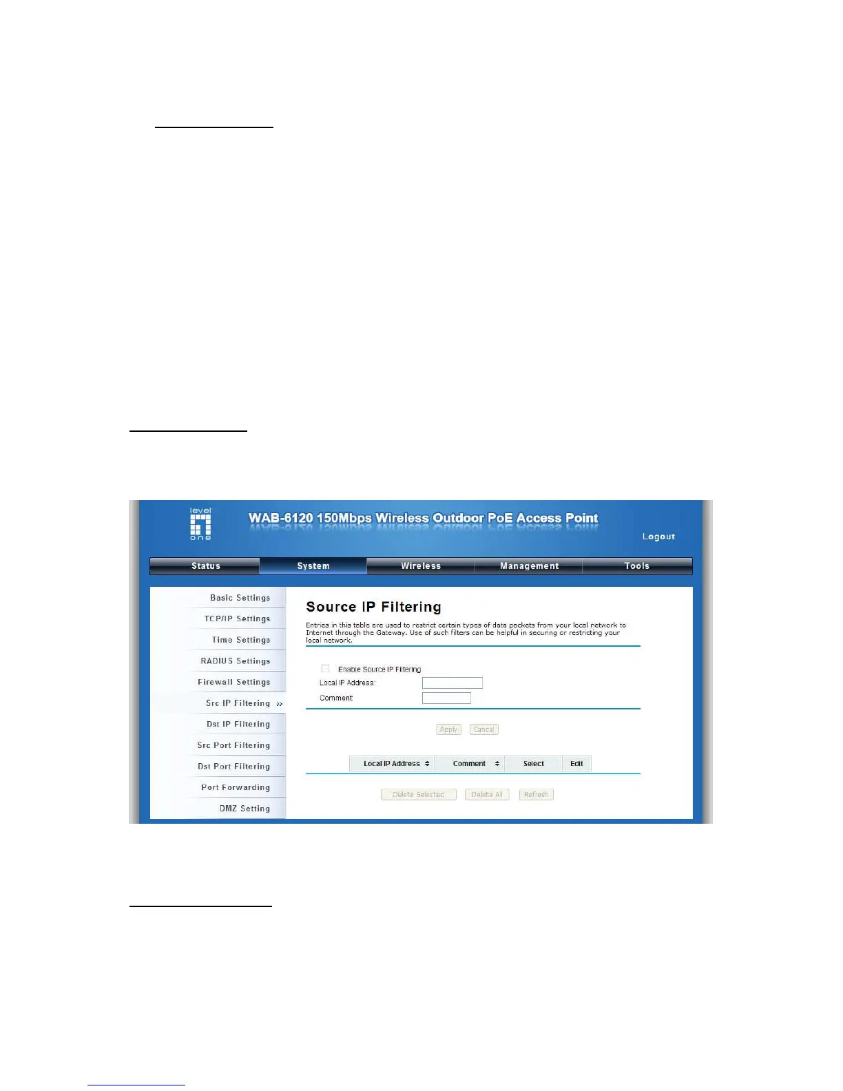 un-trusted network. LEVELONE 150MBPS WIRELESS POE AP has capabilities of Source IP Filtering,