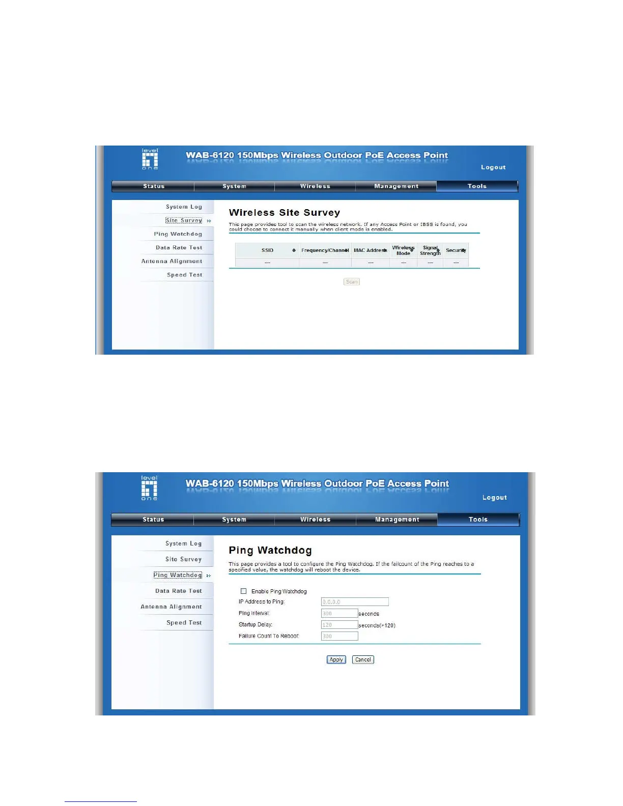 LevelOne WAB-6120 - Site Survey; Ping Watch Dog