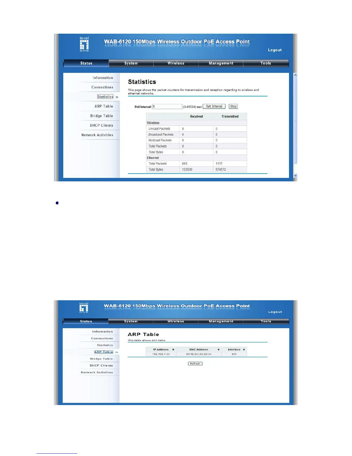 LevelOne WAB-6120 - View ARP Table