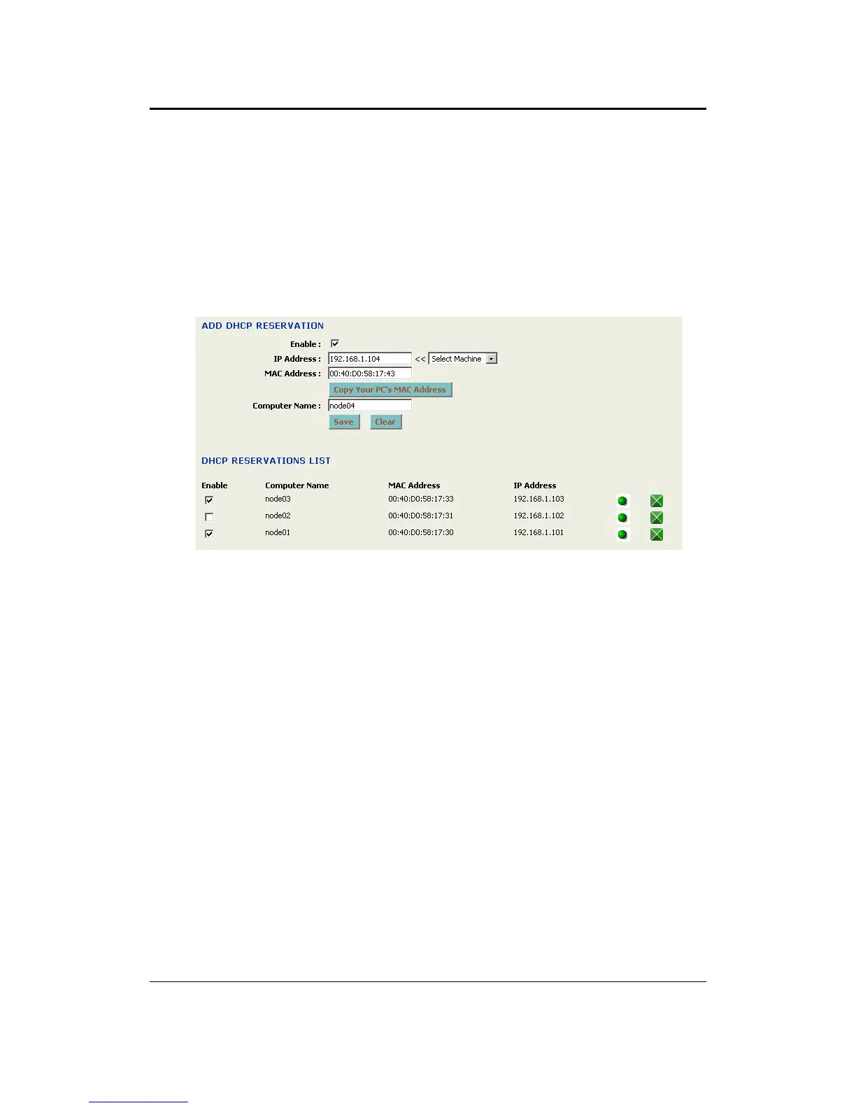 Enable DHCP Reservation: You may use this feature to reserve a specific IP