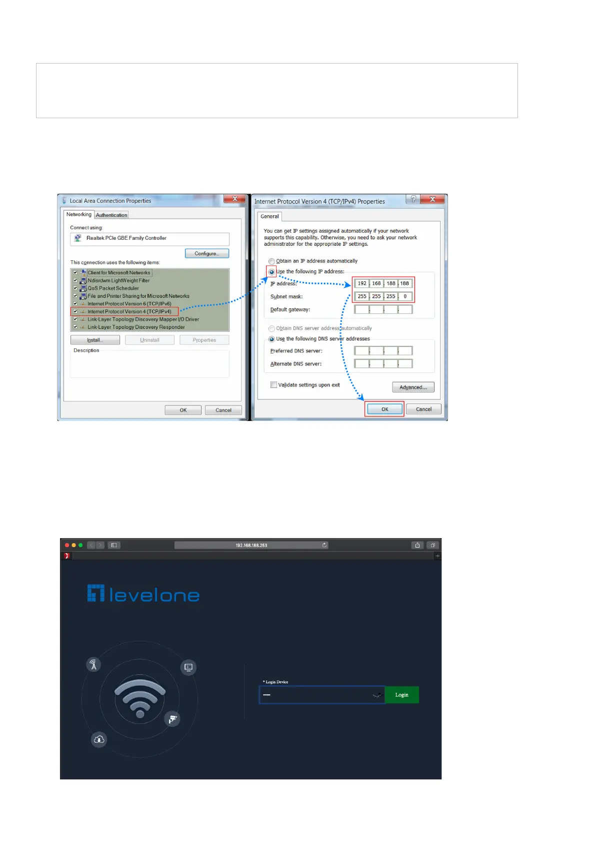 deve avere un indirizzo IP appropriato, e.g. 192.168.188.188.