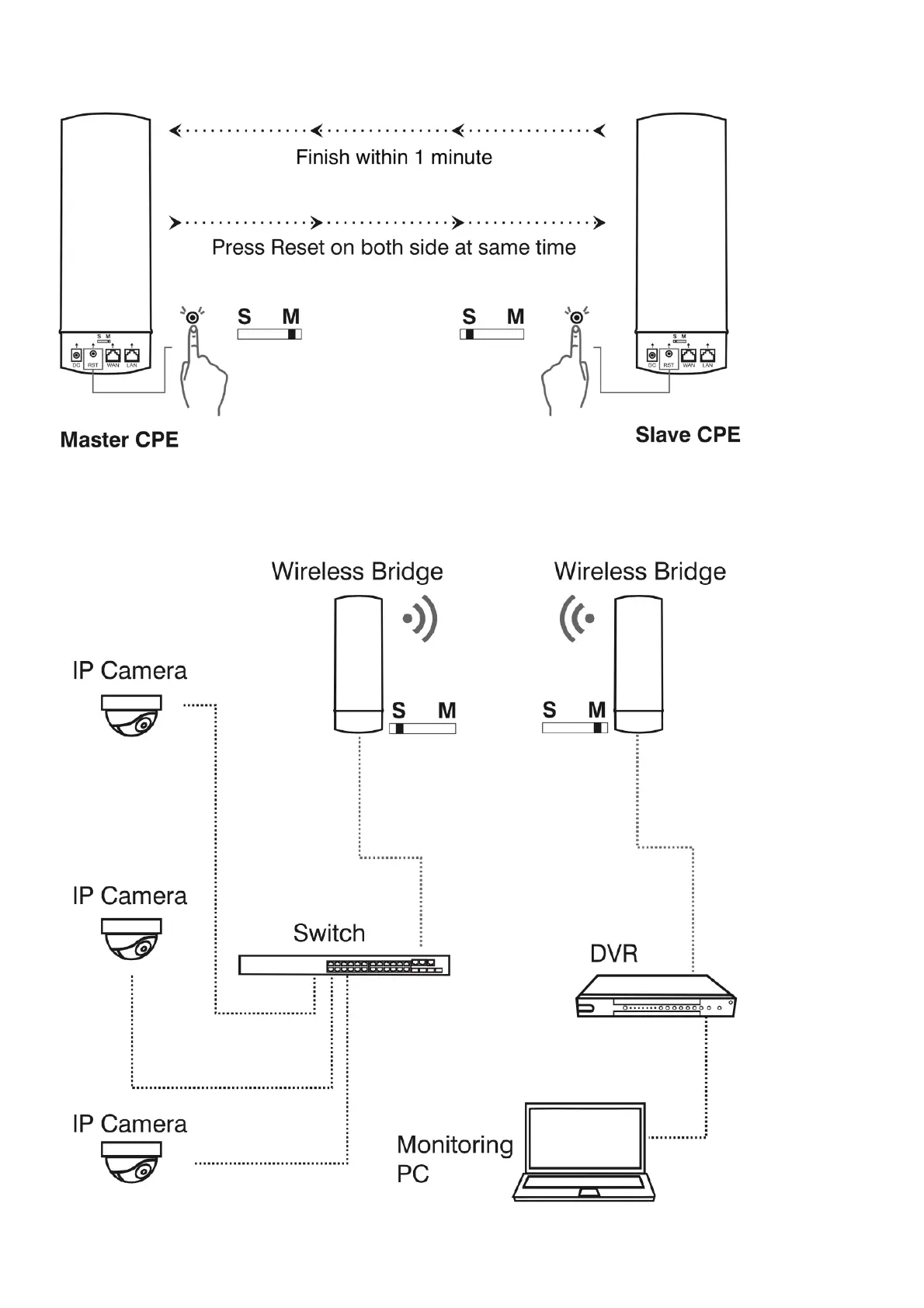 Press the reset button on both master and slave CPEs to start the fast bridge.