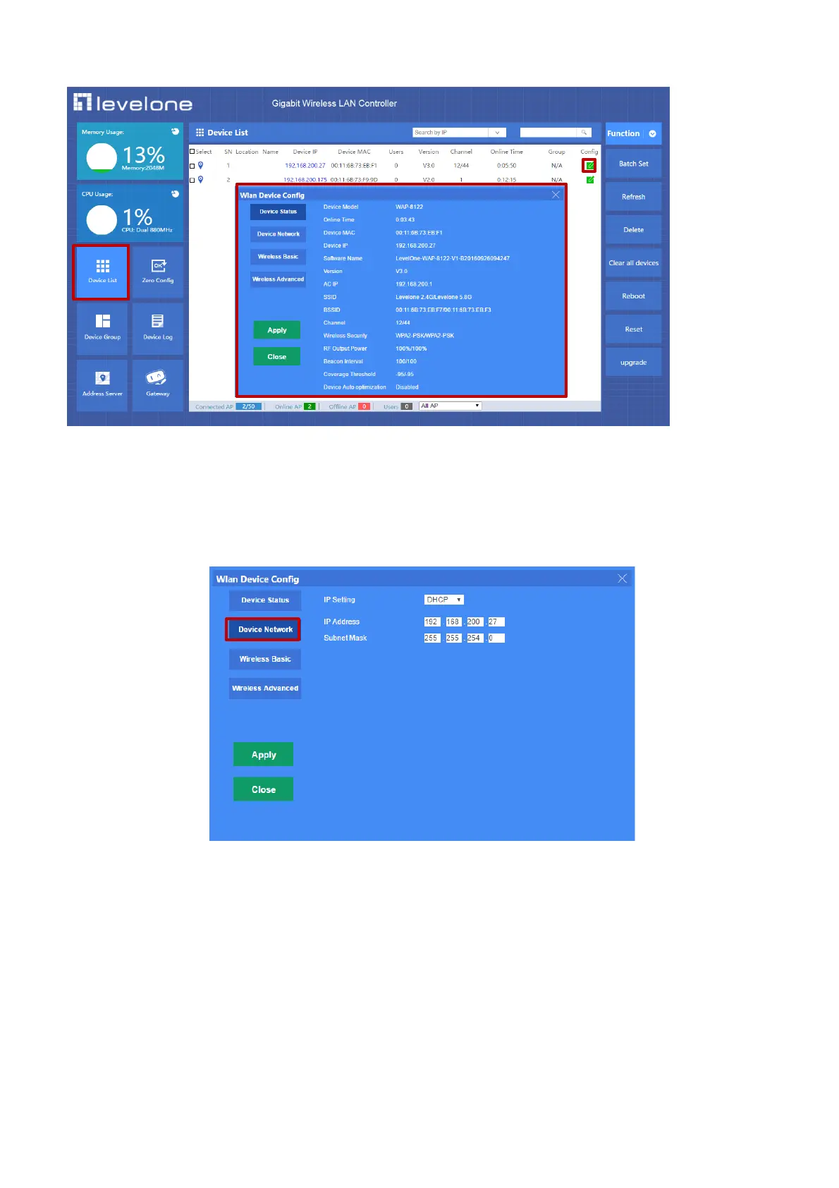 AC Controller’s IP address is 192.168.1.1. In Device Network option, AC Controller can assign IP address for connected