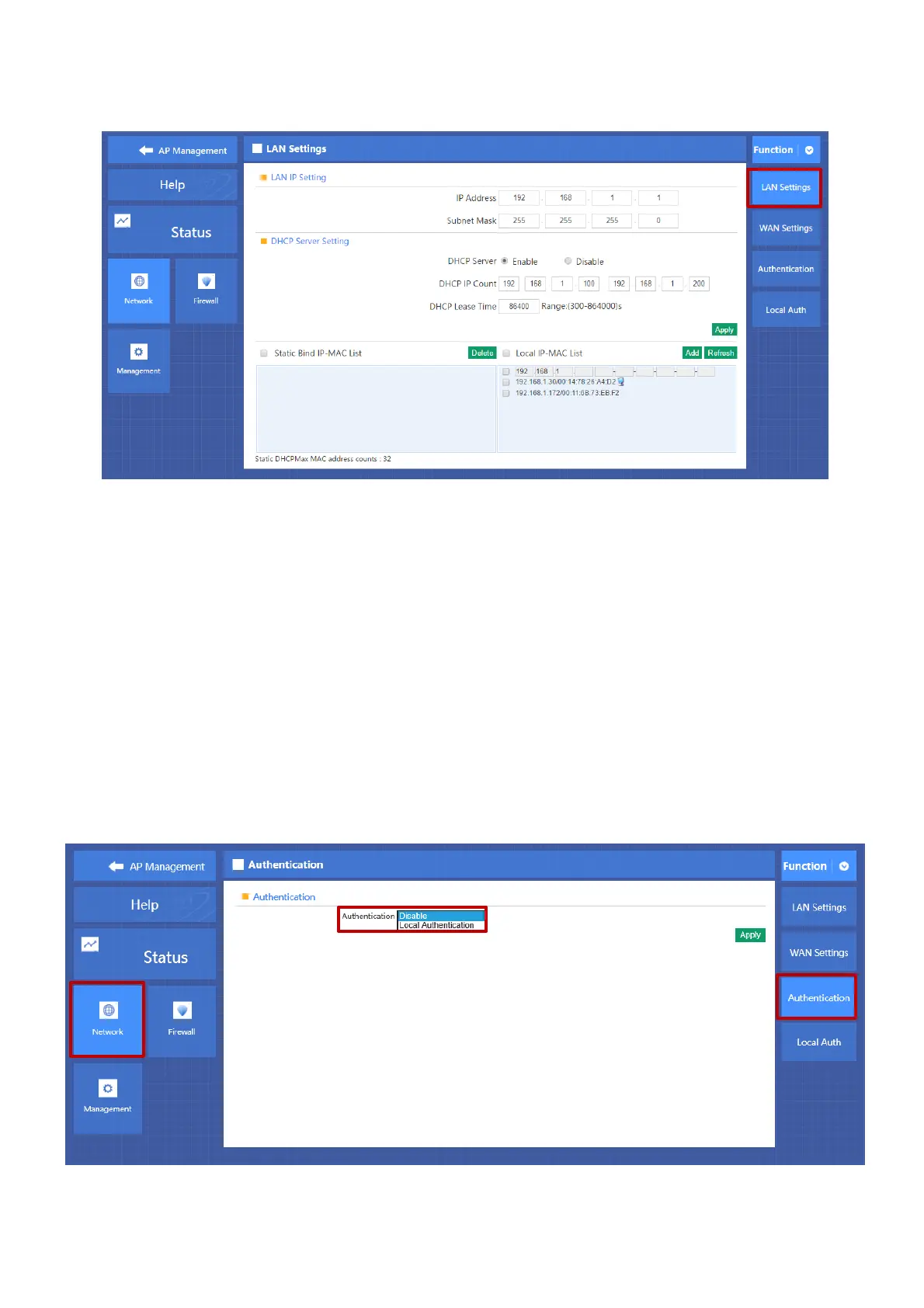 Lan Setting is based on the LAN IP address and DHCP server setting, including MAC address and IP address bind.