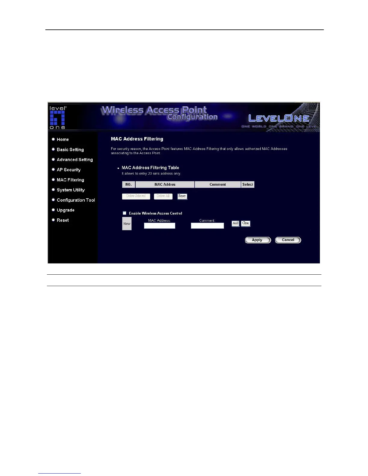 station will be added into the “MAC Address Filtering Table” above. If