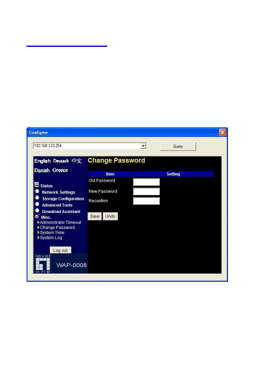 Change Password: To change the login password, you have to enter the