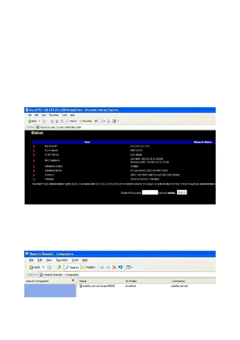 NOTE. The default host name of Network Storage is “WAP-0008”.