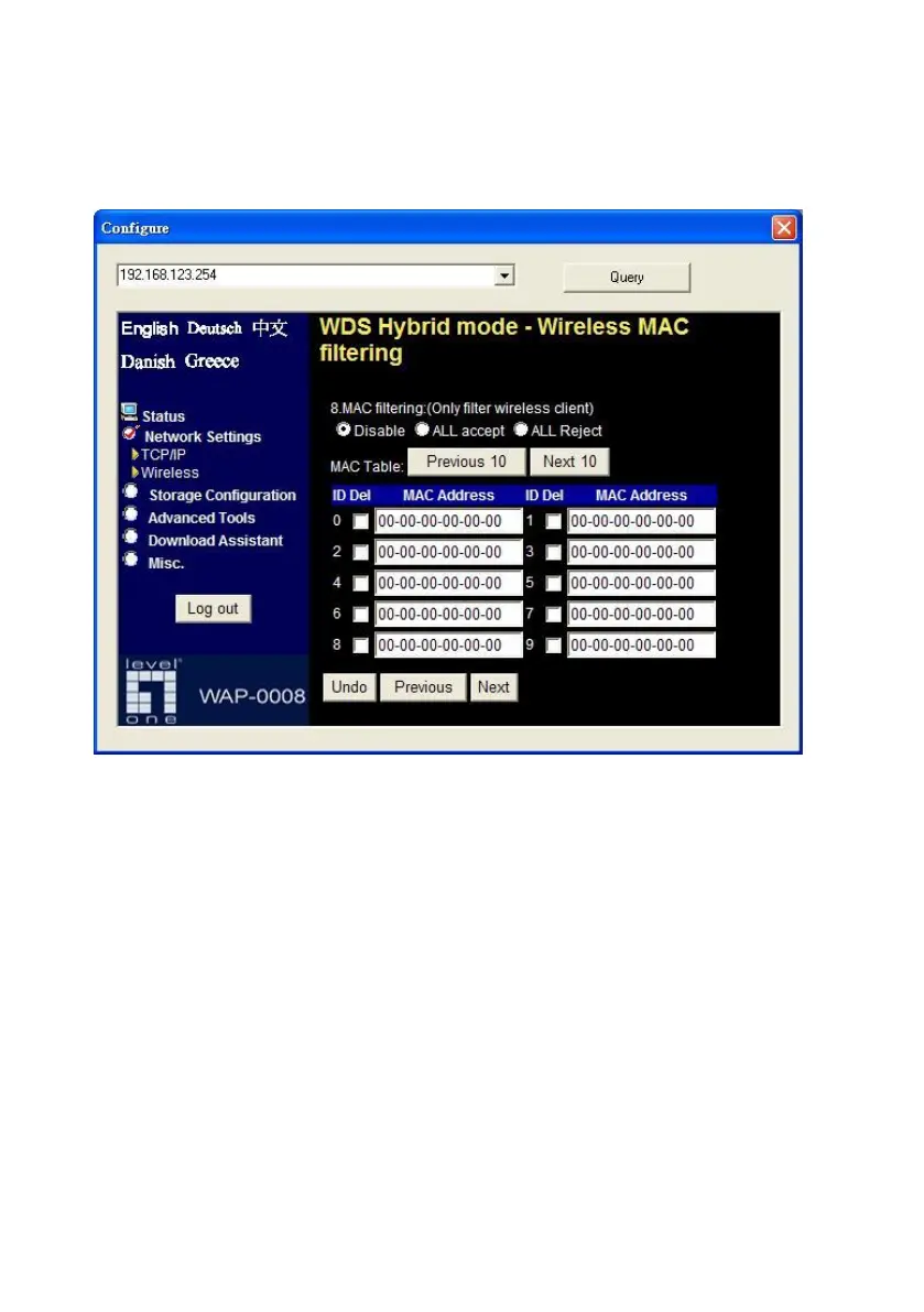 Edit wireless MAC Filtering setting, and then press Next.