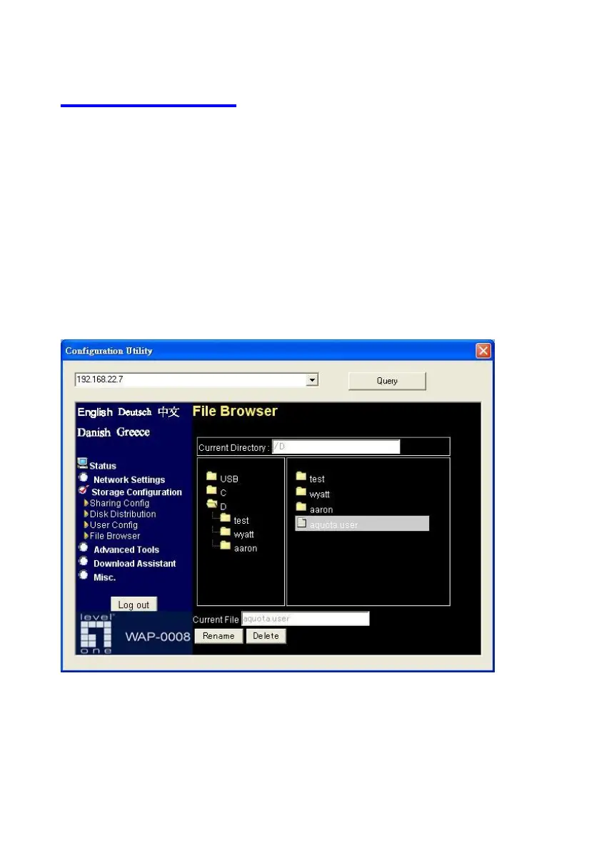The Network Storage provides a file browser to let users rename and delete