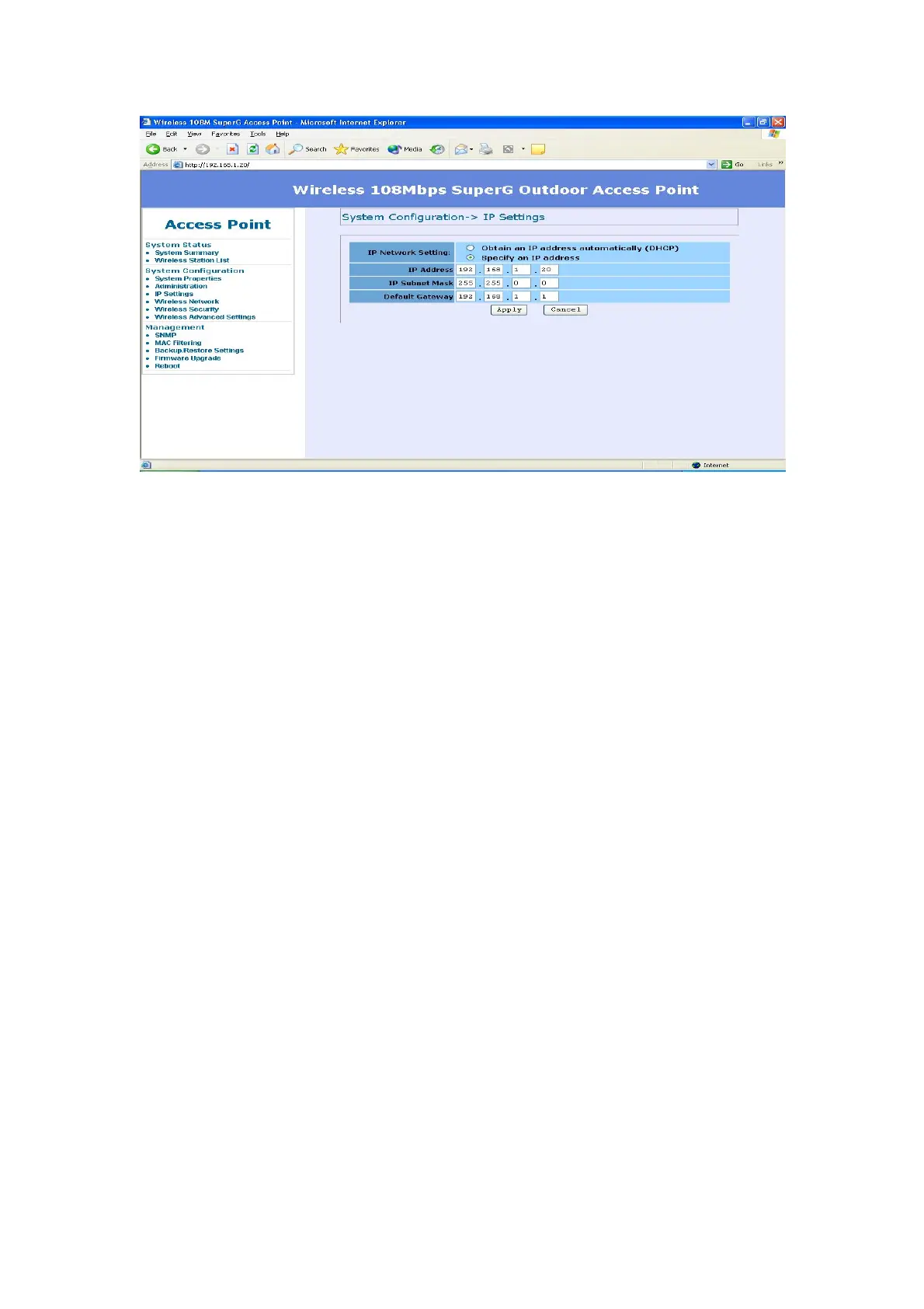 AP supports not only standard 11b/g but also 108M SuperG. (Note: 108 M