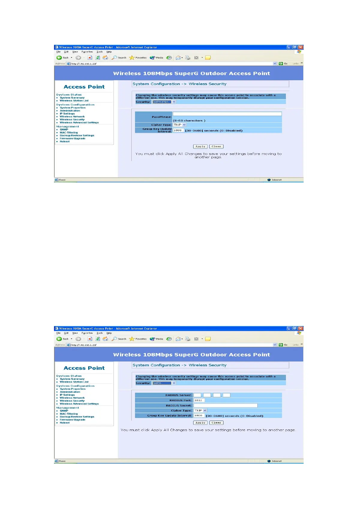 should only be used when a RADIUS server is connected to the Access Point.)