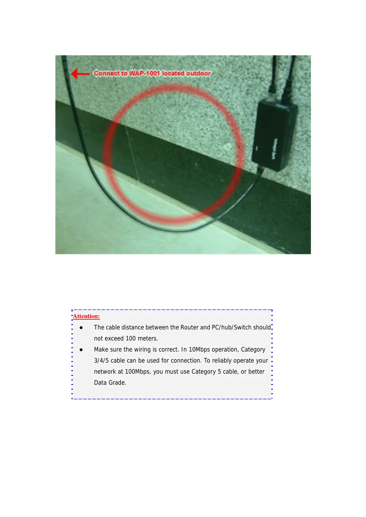 he cable distance between the Router and PC/hub/Switch should