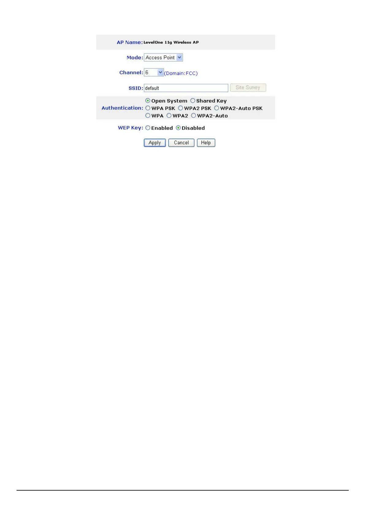 Channel: The channel that AP will operate in. User can select the channel range from 1 to 11 for