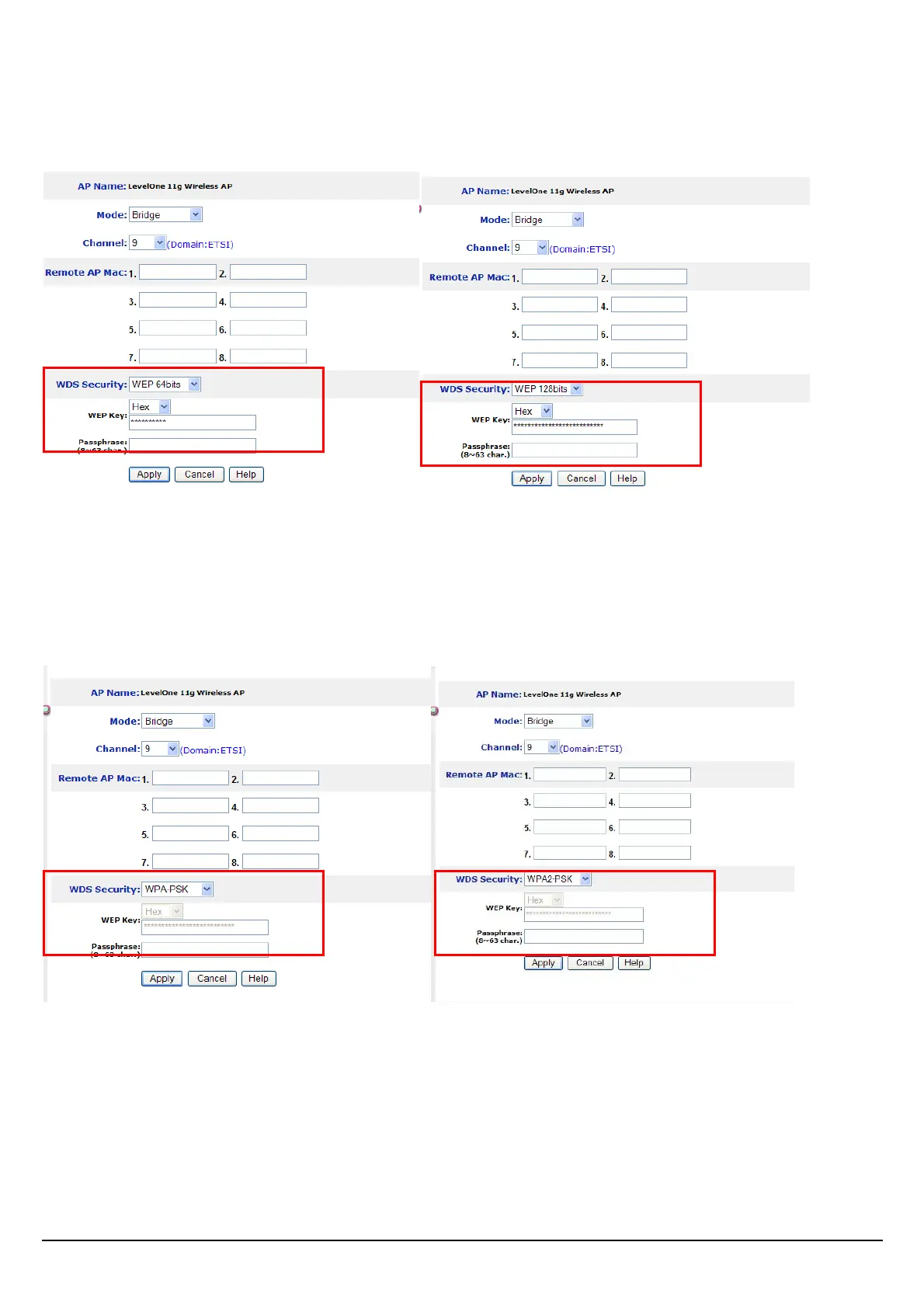 Note: When WEP security is enabled, all the wireless clients that wish to connect to the Access Point