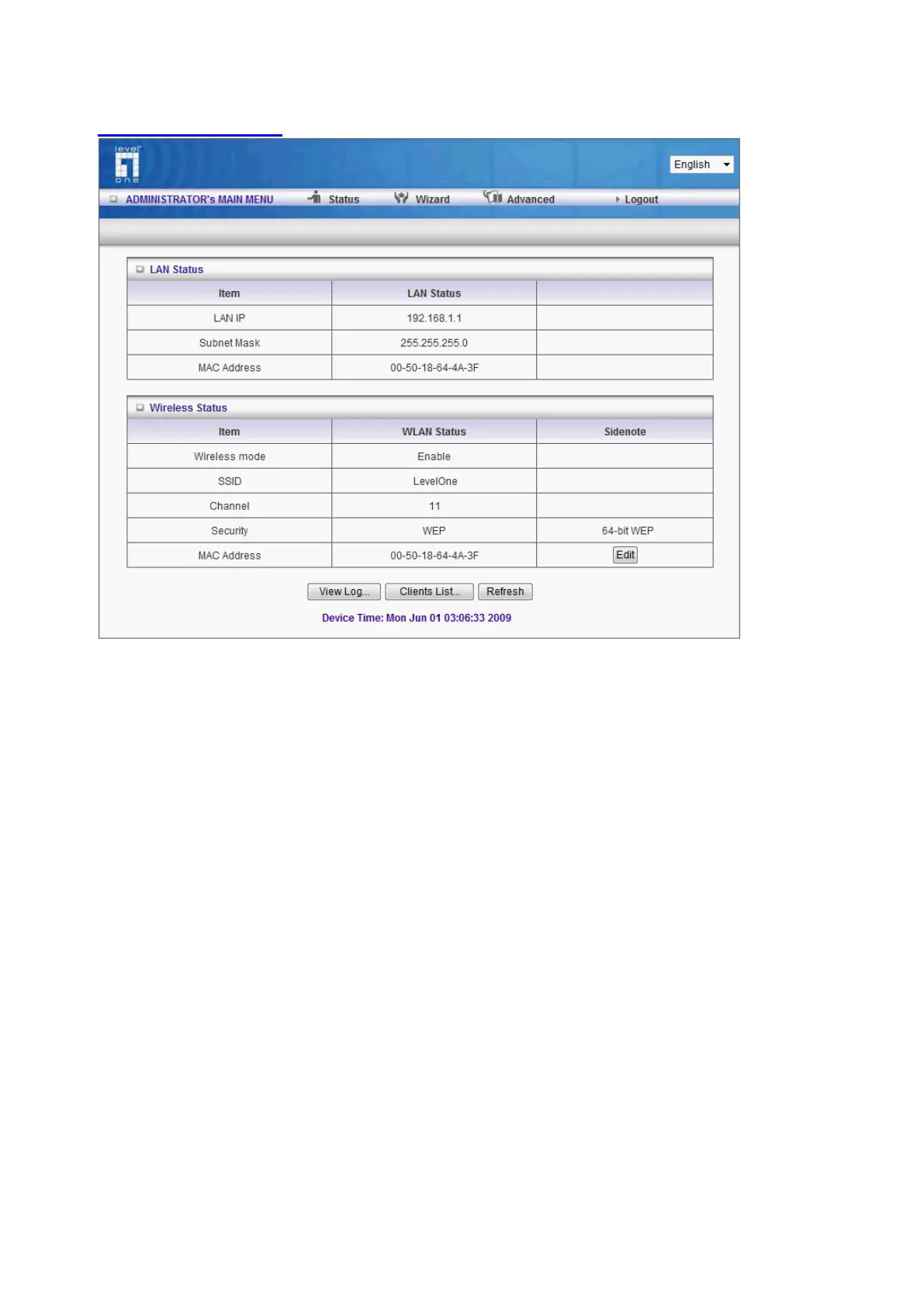 LevelOne WAP-6003 - System Status