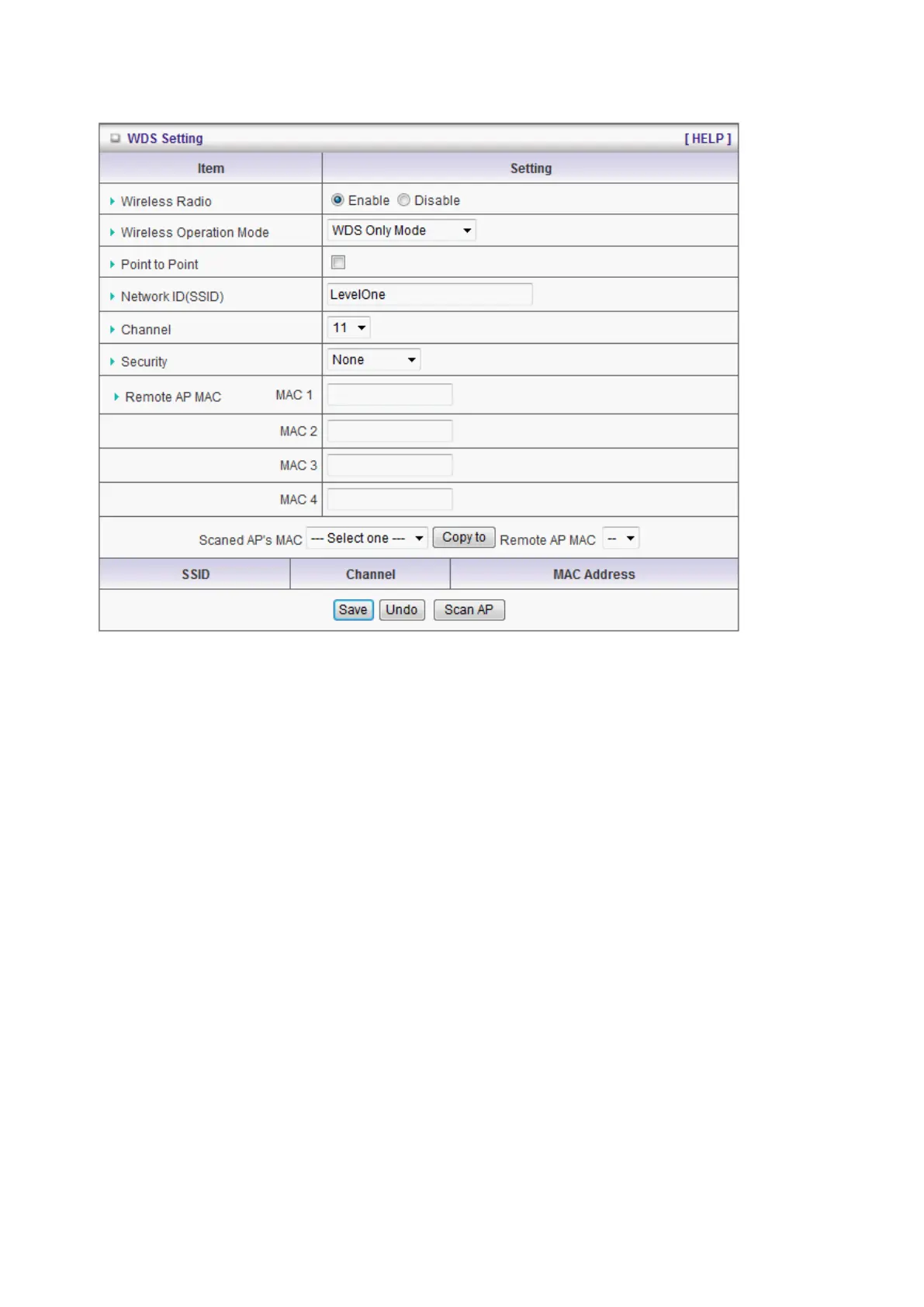 Remote AP MAC : Choose “Manual” or scan one AP to copy to item1~4.