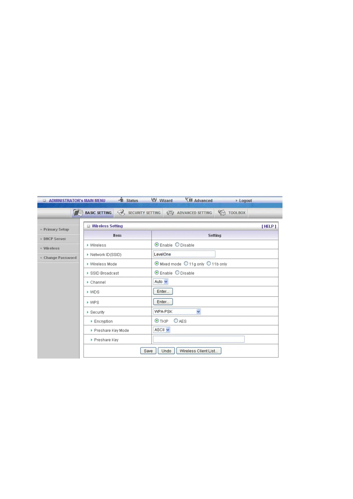 1. Select Encryption and Pre-share Key Mode