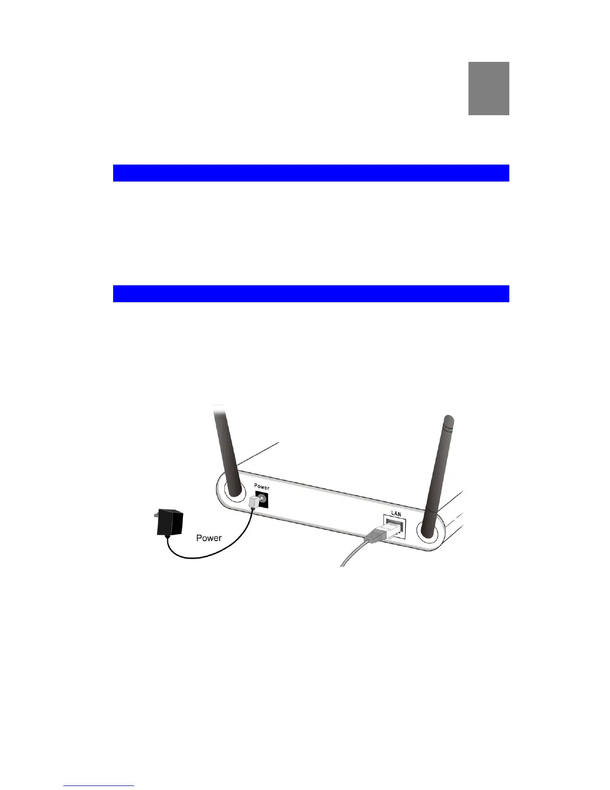 3. Connect the supplied power adapter to the Wireless Access Point and a convenient power