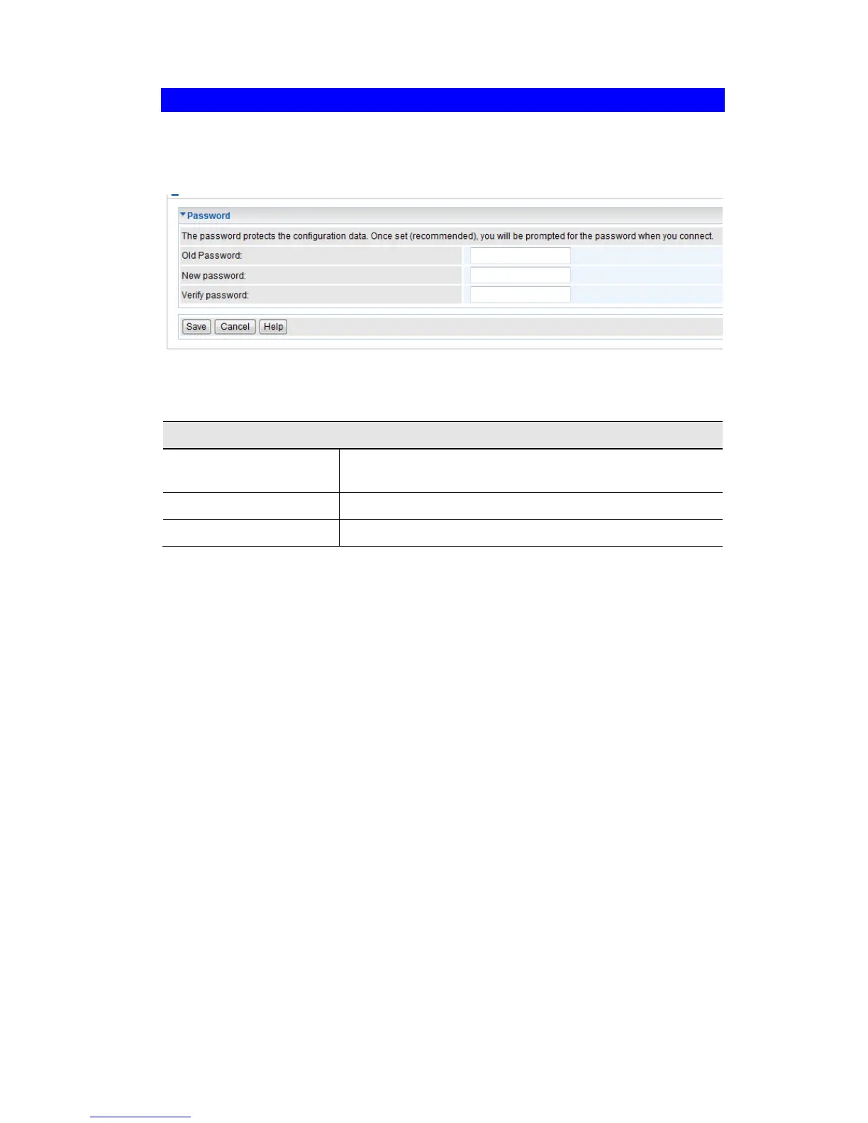 The Password screen allows you to assign a password to the Wireless Access Point. This