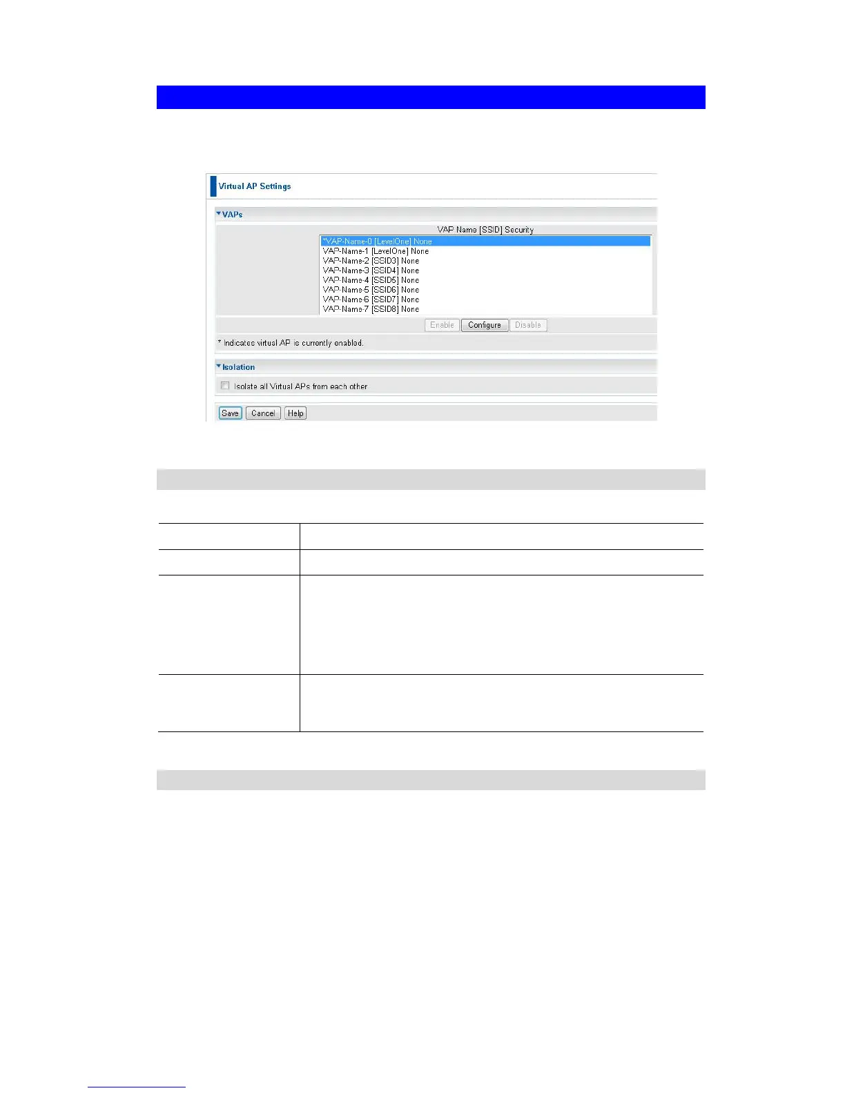 This screen is displayed when you select a VAP on the Virtual AP Settings screen, and