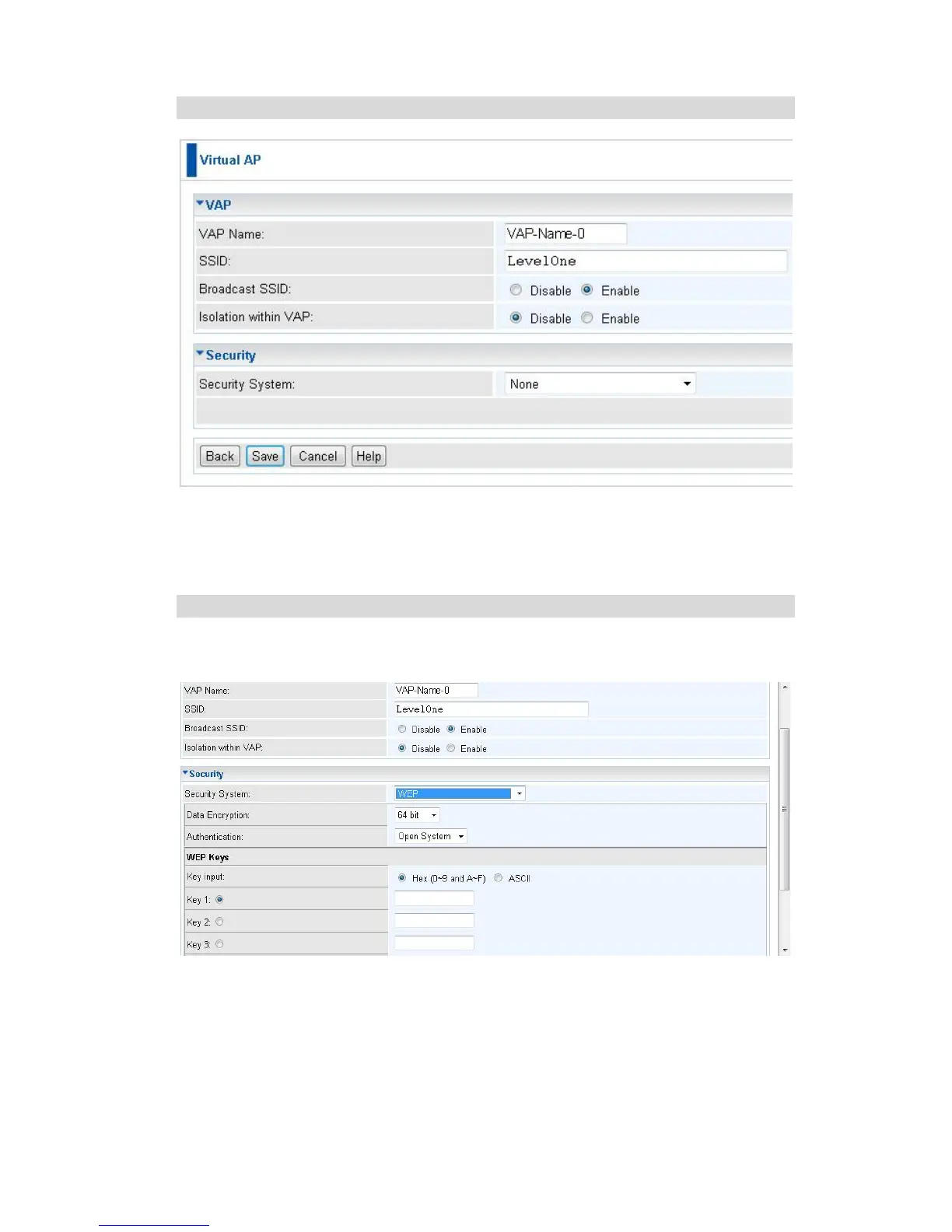 Figure 13: WEP Wireless Security Screen