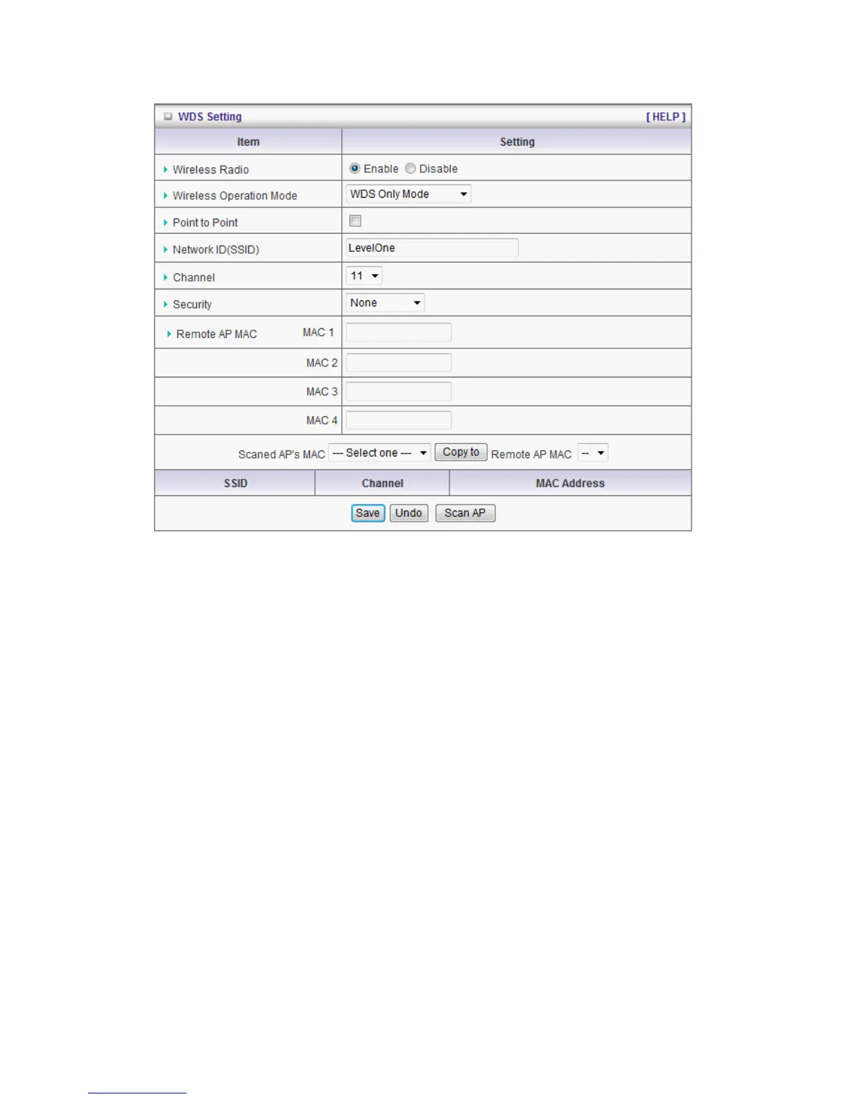 Remote AP MAC : Choose “Manual” or scan one AP to copy to item1~4.