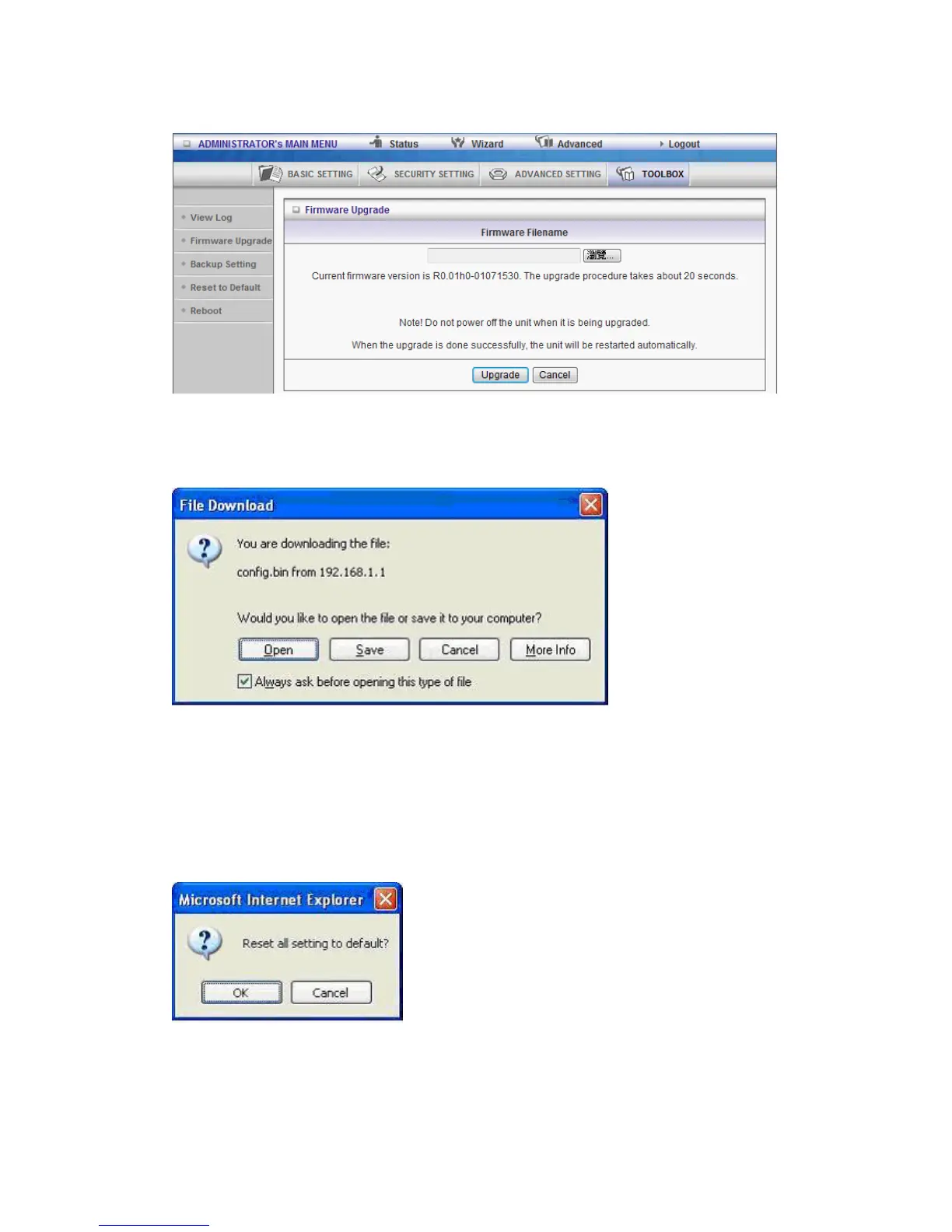 Once you want to restore these settings, please click Firmware Upgrade button and use the