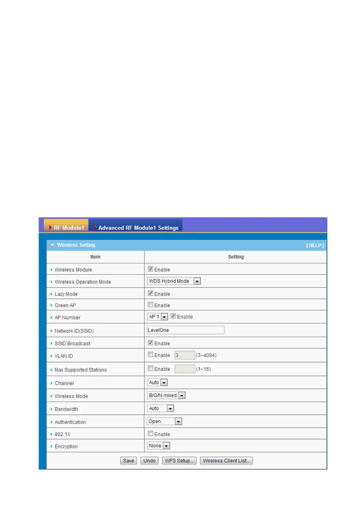 Wireless settings allow you to set the WLAN (wireless LAN) configuration items. When the