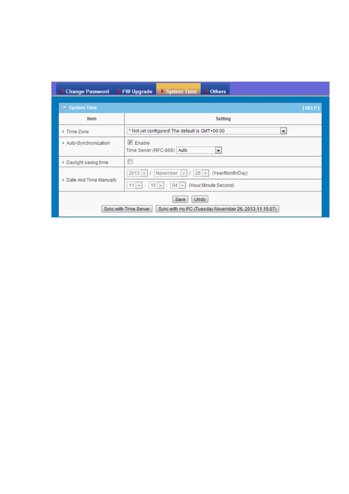 3. Sync with Time Server: Click on the button if you want to set Date and Time by